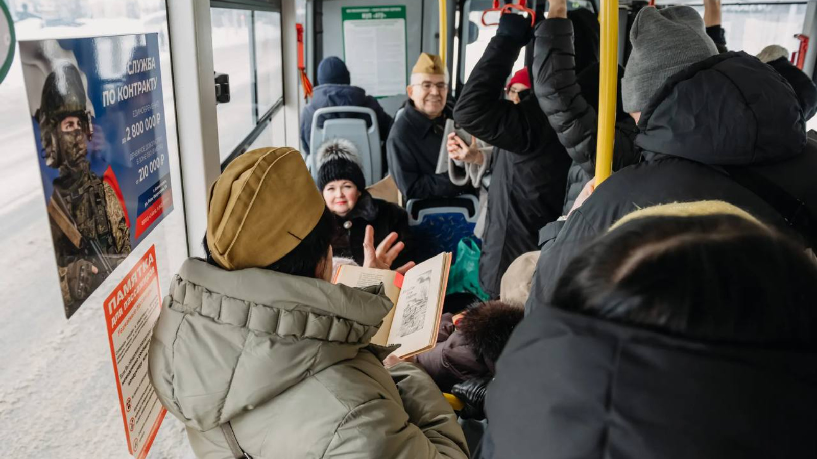 Артисты влились в поток пассажиров и начали читать произведения поэта. Среди привычной городской суеты и тишины внезапно зазвучали бессмертные строки — глубокая, лирическая и пронзительная патриотическая поэзия Джалиля. На протяжении всего пути в салоне звучали стихи на двух государственных языках — татарском и русском.