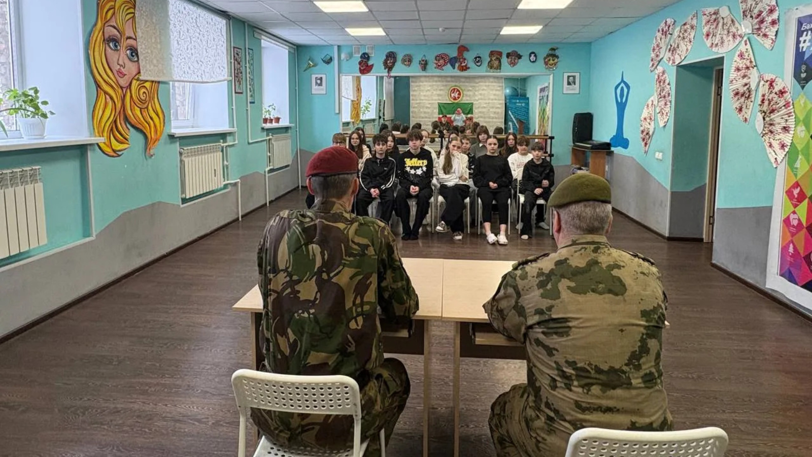 Для воспитанников клуба организовали урок рисования, на котором они создавали портреты героев. Во время работы ребята могли напрямую пообщаться с ветеранами: задать вопросы, услышать живые истории из армейской жизни, узнать о мужестве, долге и настоящей дружбе.