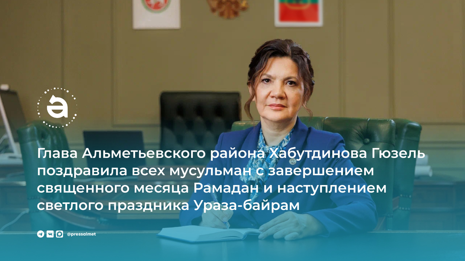 Глава Альметьевского района Гюзель Хабутдинова обратилась к жителям с поздравлением по случаю завершения священного месяца Рамадан и наступления праздника Ураза-байрам.