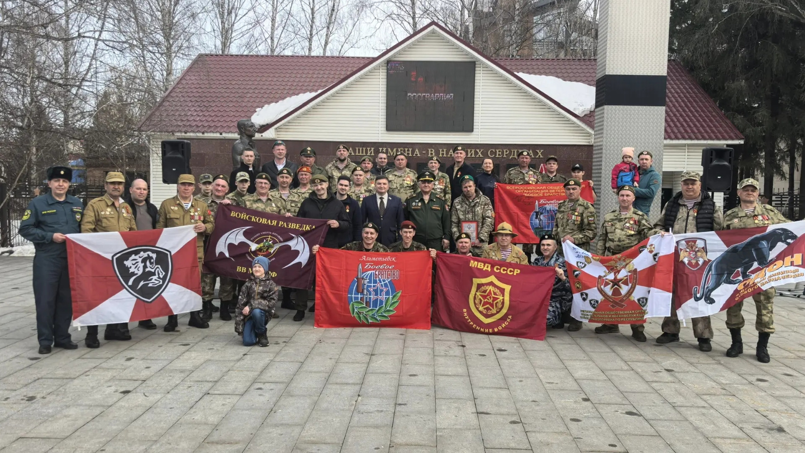 27 марта на площади Памяти в Альметьевске прошло мероприятие, объединившее ветеранов боевых действий , войск правопорядка, представителей общественности и почетных гостей. Среди участников — ветераны Альметьевского и Бугульминского отделений «Боевого братства», заместитель военного комиссара города Павел Васильченко, руководитель альметьевского отделения Юрий Максимов.