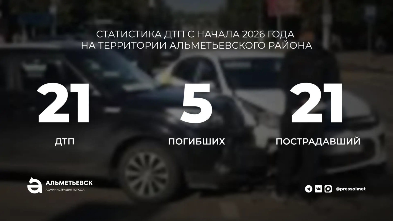 По данным Госавтоинспекции, за первые три месяца 2026 года в Альметьевском районе зарегистрировано 21 дорожно-транспортное происшествие.