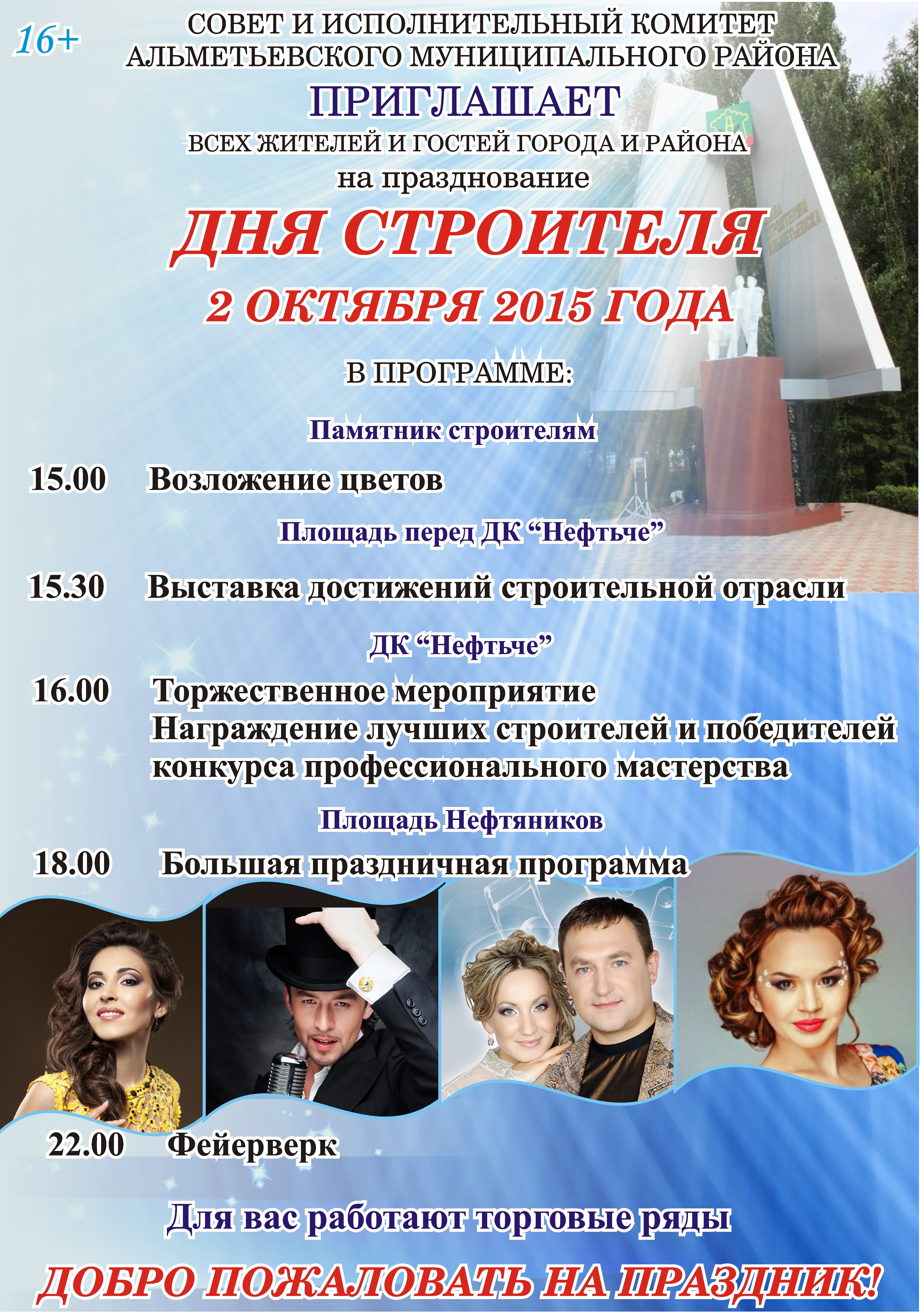 На этой неделе состоится празднование дня учителя. В пятницу, 2 октября пройдут торжественные мероприятия, посвященные празднованию дня строителя. С афишей праздника Вы можете ознакомиться ЗДЕСЬ.