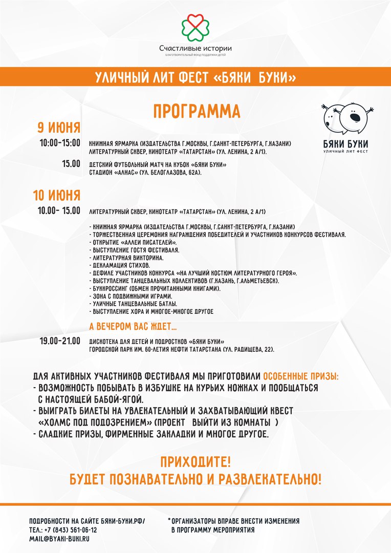 Более подробная программа литературной смены, программа уличного фестиваля "Бяки Буки" и электронная афиша фестиваля прилагаются.