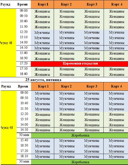 Расписание соревнований:
