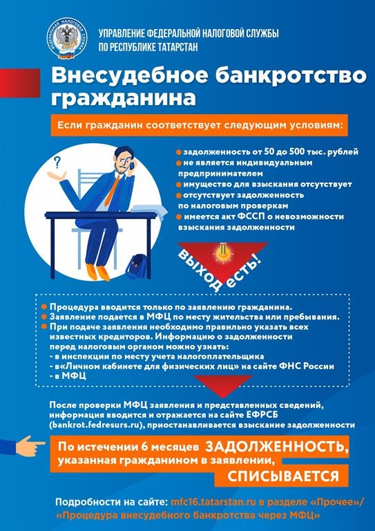 В случае, если во время внесудебного банкротства у гражданина существенно улучшится имущественное положение, он обязан в течение пяти рабочих дней уведомить об этом МФЦ. В течение трех рабочих дней МФЦ включает в Единый федеральный реестр сведения о прекращении процедуры внесудебного банкротства гражданина.
