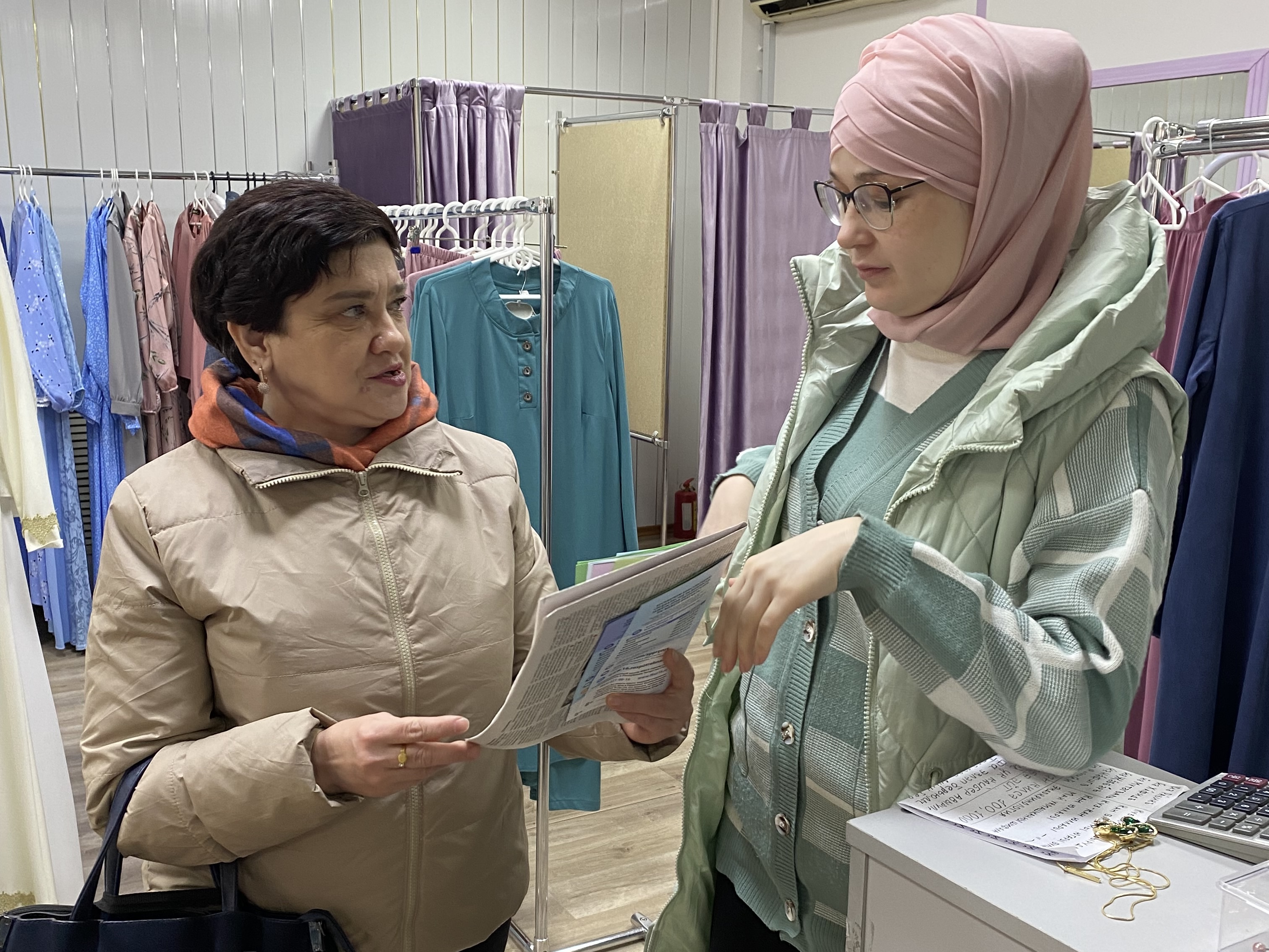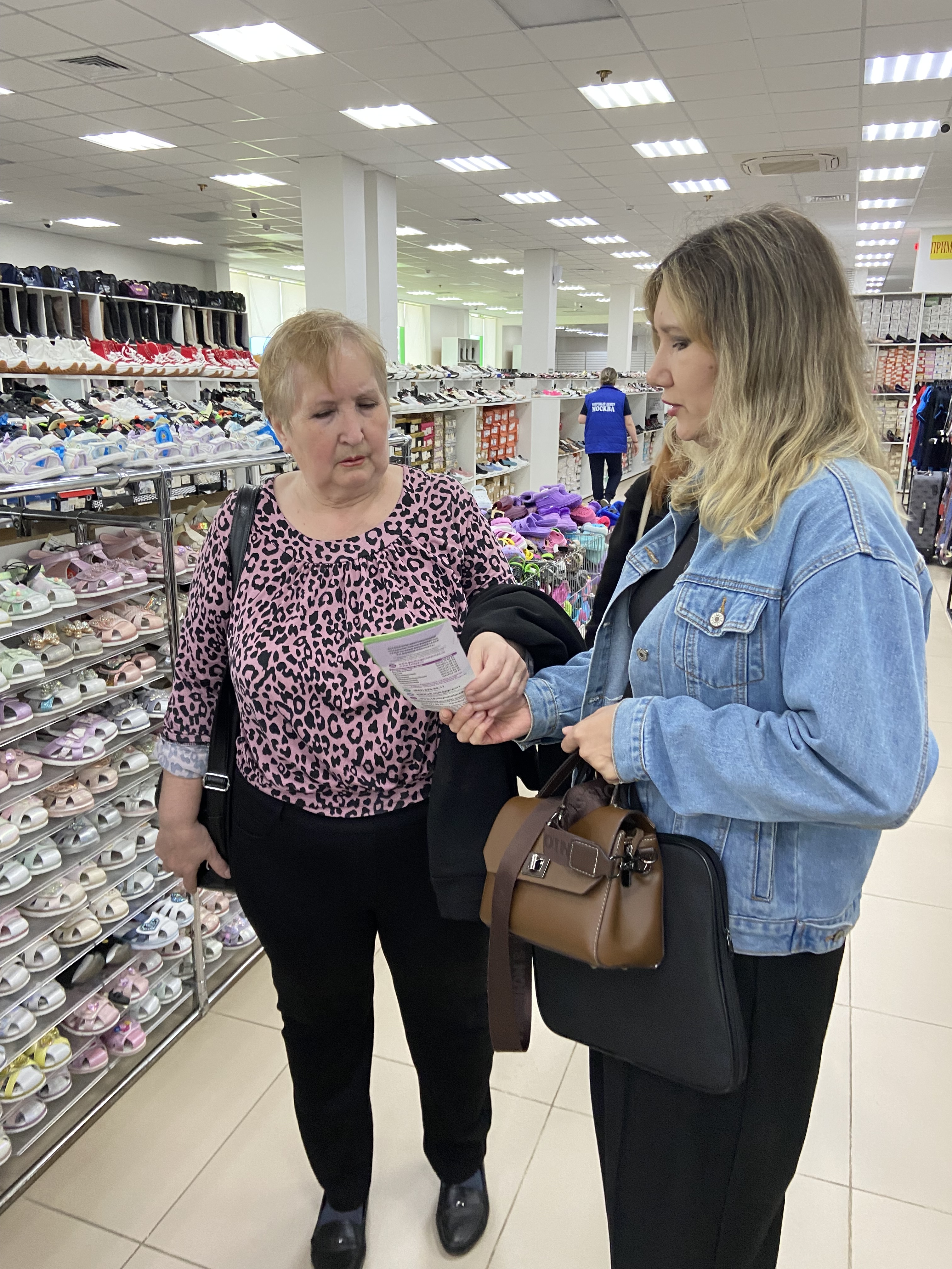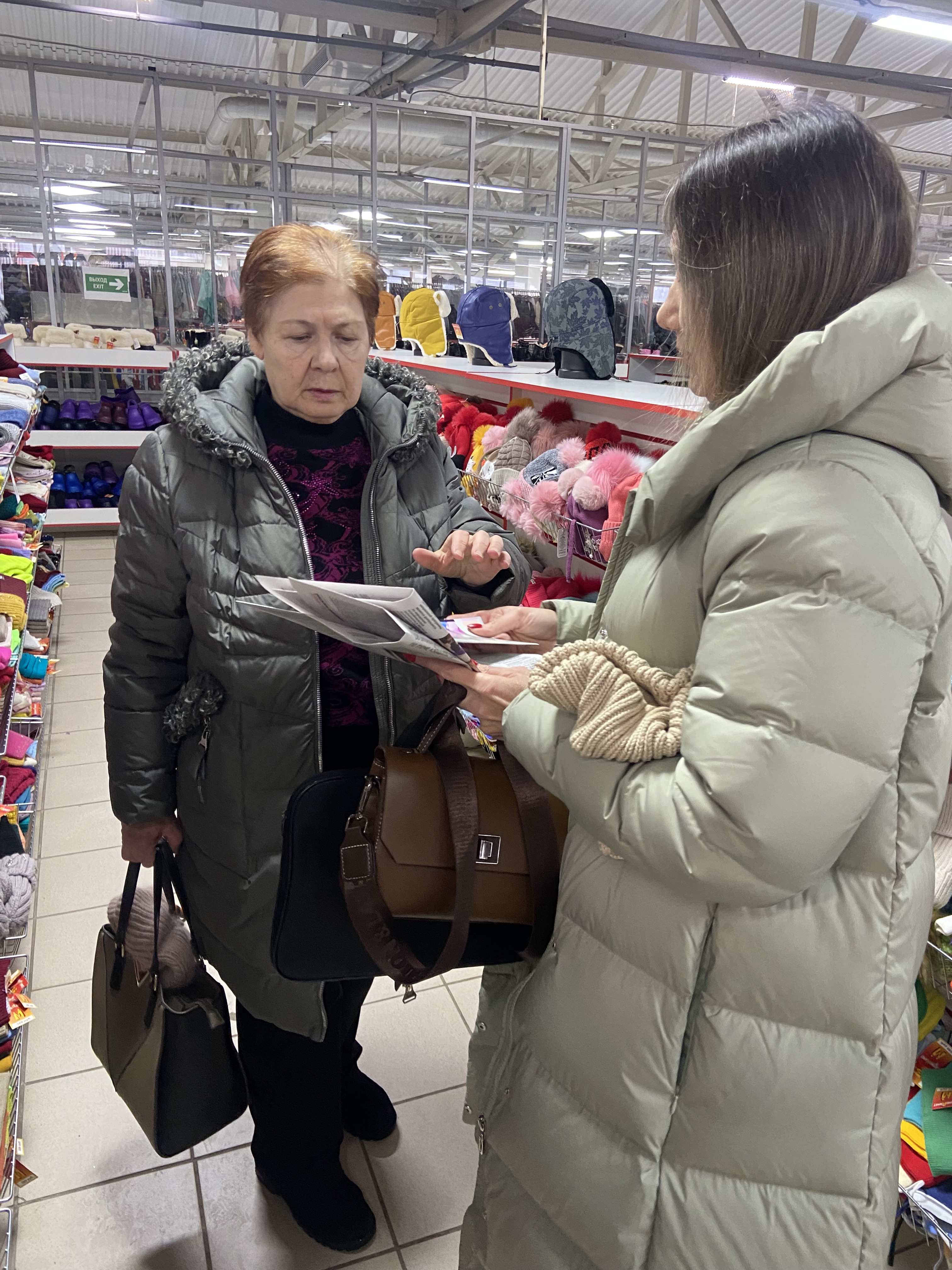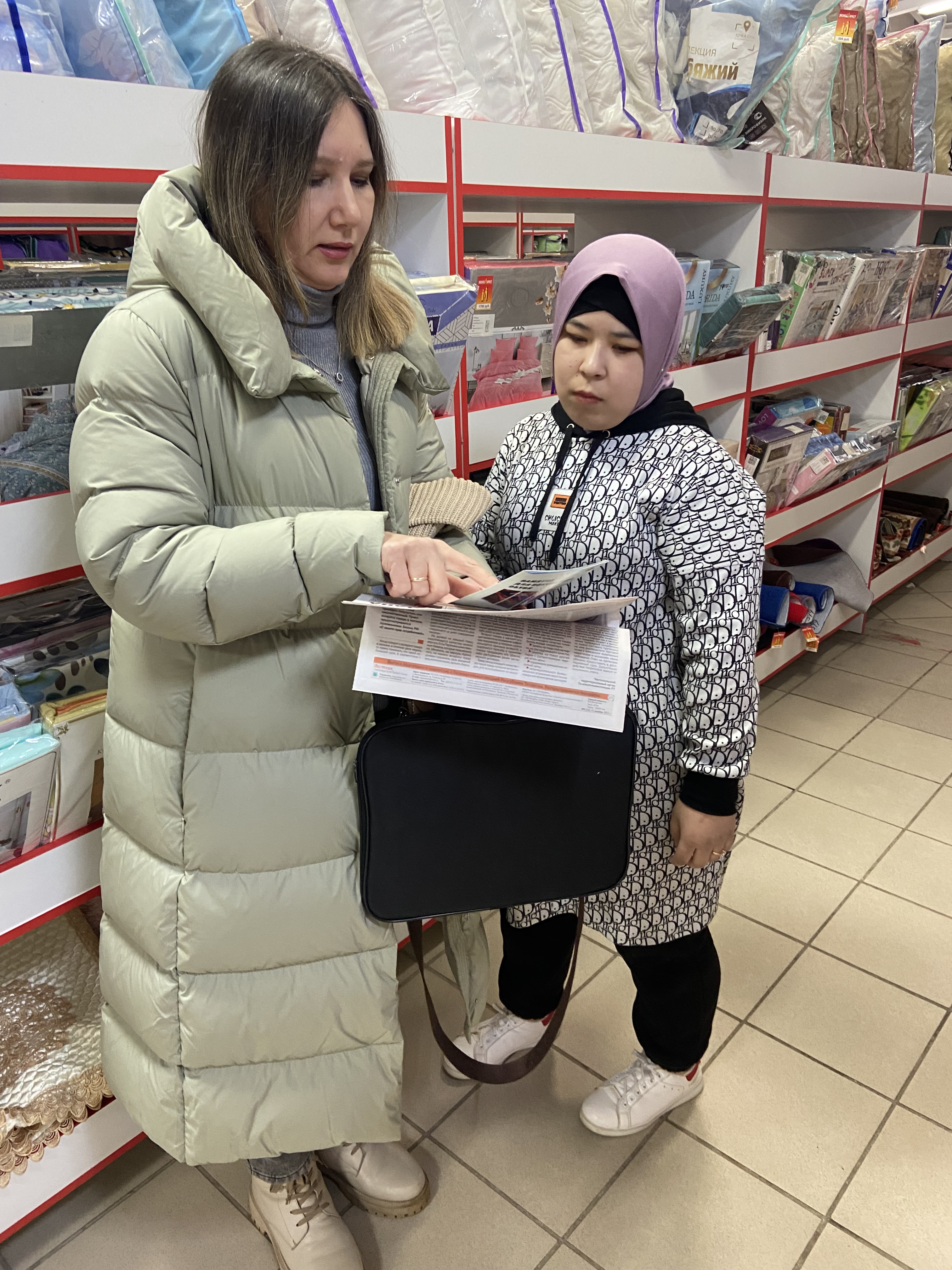 В торговом комплексе «ЭконоМаркет» в городе Альметьевск сотрудники провели консультационный стол для покупателей, рассказали о правах при покупке одежды, обуви и других непродовольственных товаров надлежащего и ненадлежащего качества, раздали информационный материал.