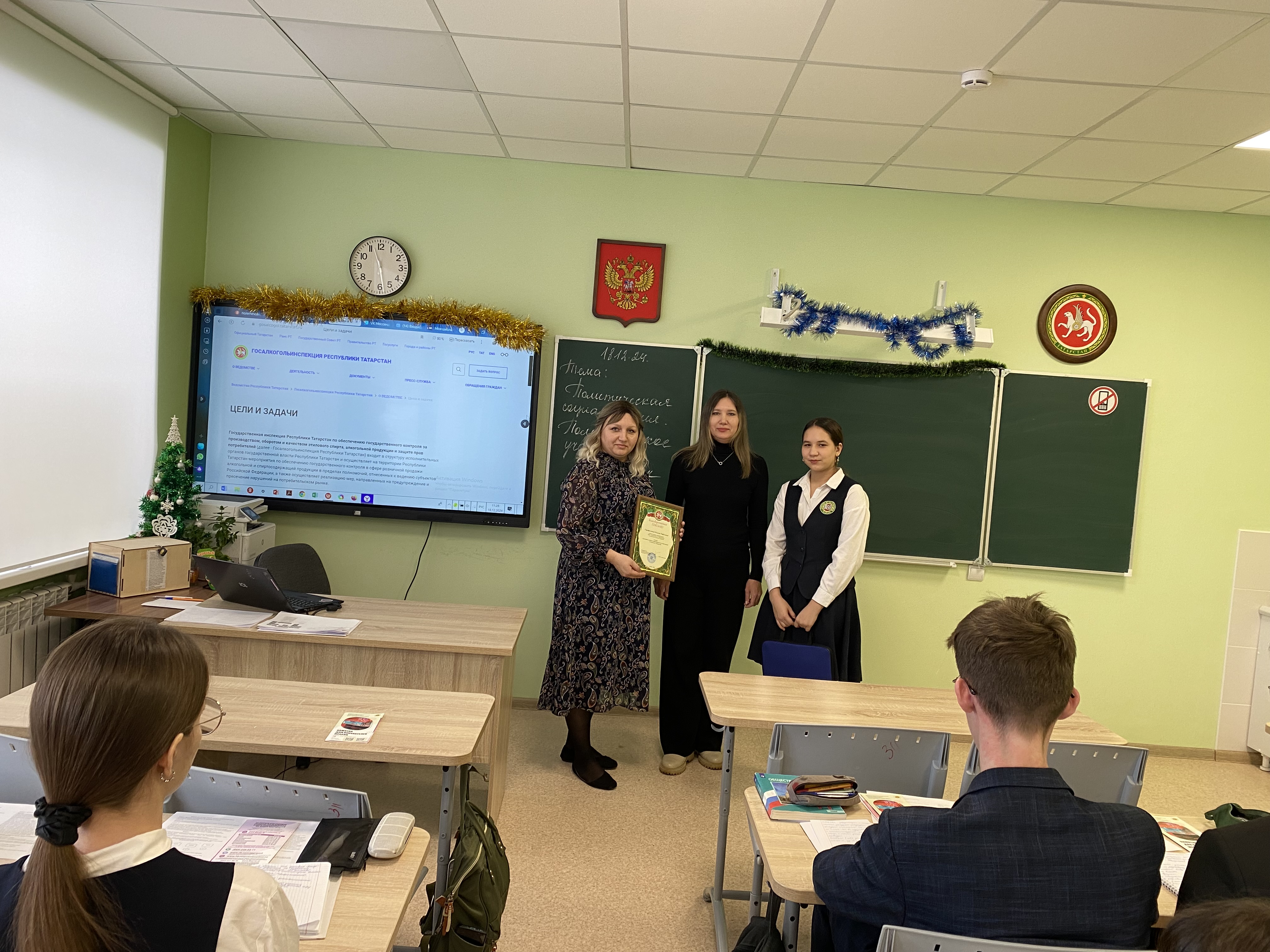 За активное участие в Олимпиаде по защите прав потребителей поздравили и вручили памятные подарки ученице МБОУ «СОШ №17» Хайбуллиной Эльзе Ильдусовне и ученице МБОУ «Гимназия №1 им. Р.Фахретдина Суфиевой Риане Рамильевне.