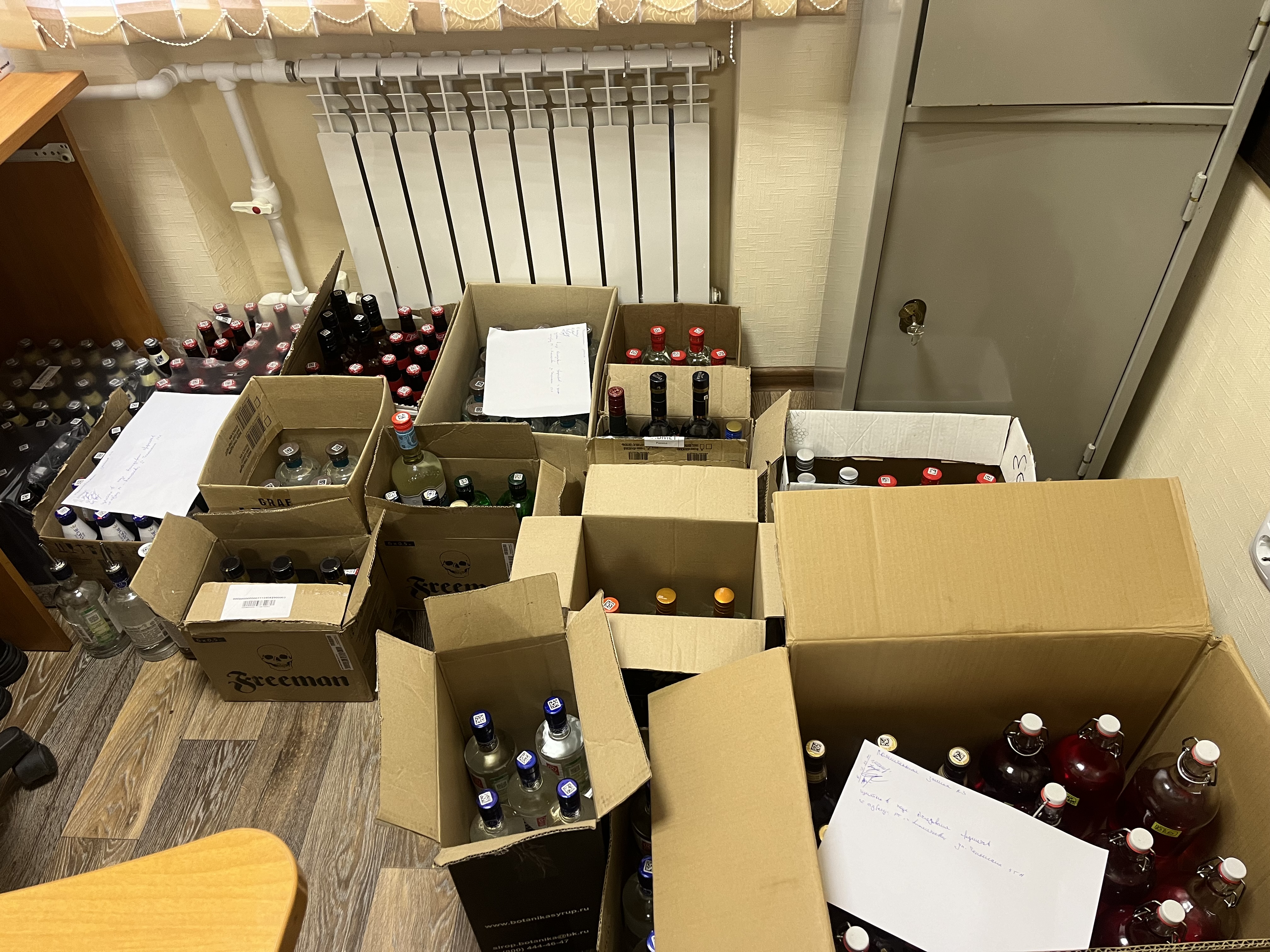 Общее количество изъятой алкогольной продукции составило 408 бутылок (178,5 литров).