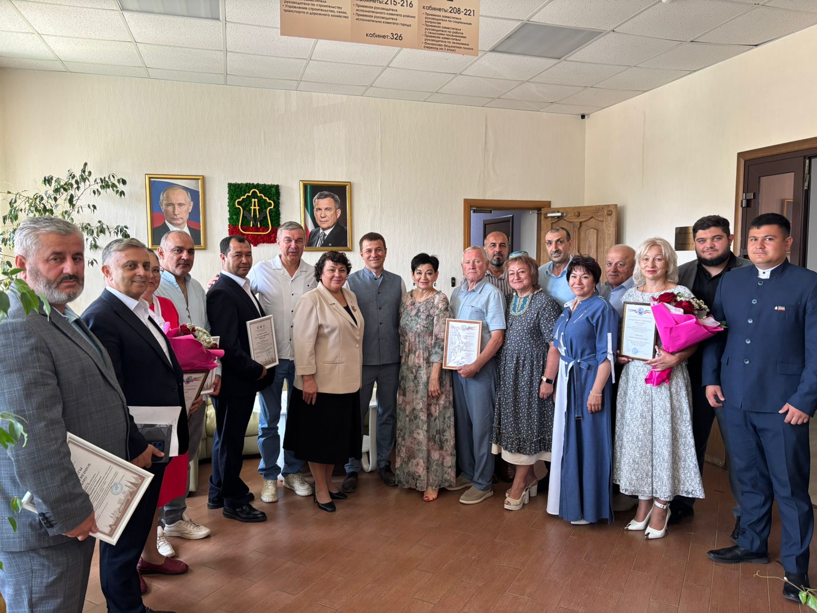В Управлении ЗАГС Альметьевска чествовали супружеские пары, прожившие вместе 50 лет: Михаила Николаевича и Татьяну Георгиевну Шатриловых, а также Рахимджона Самиевича и Розу Темирхановну Набиевых. Торжественное мероприятие было организовано в рамках национального проекта «Семья».