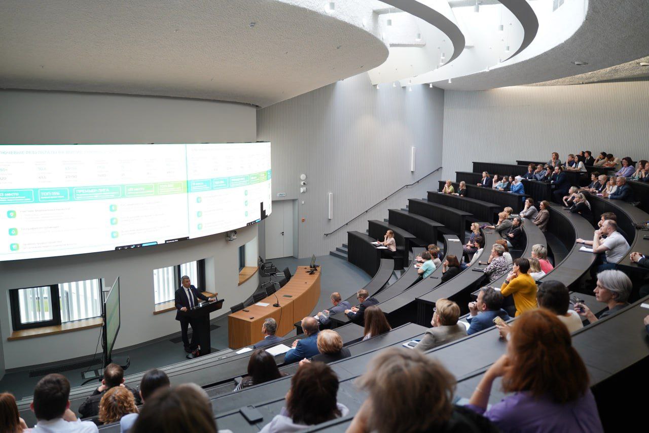 В докладе был представлен подробный анализ учебного процесса в школах района, результатов олимпиадного движения, ГИА и ЕГЭ. Отмечено, что особое внимание уделяется качеству образования. До 2027 года новым оборудованием будут оснащены кабинеты труда и ОБЖ. С 2024 года стартует трехлетняя программа переоснащения кабинетов изобразительного искусства, музыки и физики. Ужесточены правила приема в школы детей иностранных граждан: требуется подтверждение законности пребывания в РФ и сдача теста по русскому языку. Из 173 заявителей в этом году тест успешно прошли 151. Для желающих организованы языковые курсы.