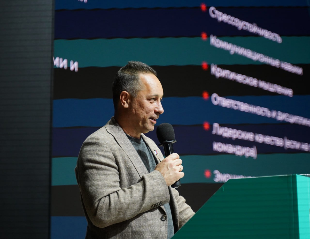 Тему профориентации продолжили в своих выступлениях директор фонда лицея № 1 им. Тагирова Муса Галимзянов и первый проректор Альметьевского Государственного Технического Университета Высшая Школа Нефти Юрий Василенко.