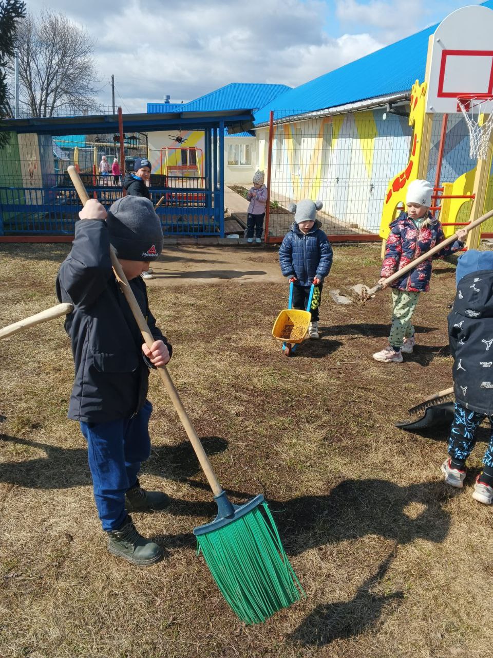 Весна - это не только время пробуждения природы, но и пора наведения чистоты и порядка. Снег растаял и в МБДОУ "Д/с"Жемчужинка" с. Клементейкино дружно взялись за уборку территории.