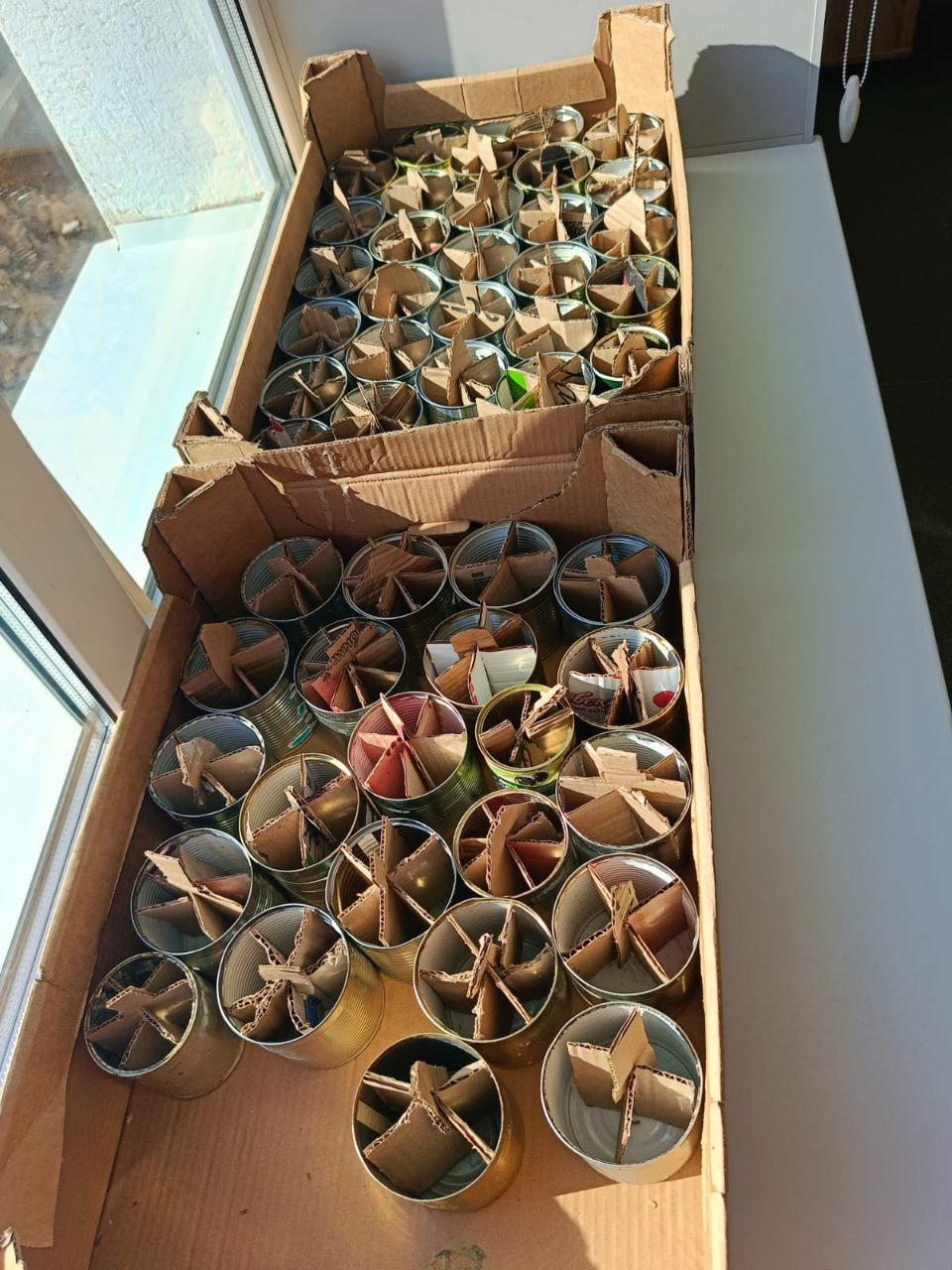 Группа "Любознайки" МБДОУ "ЦРР - д/с №46 "Золушка" изготовили экокормушки с использованием втулок, клейстера из муки, разных семян и зёрен.