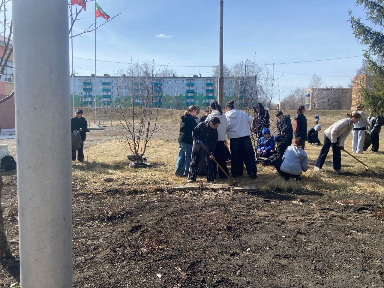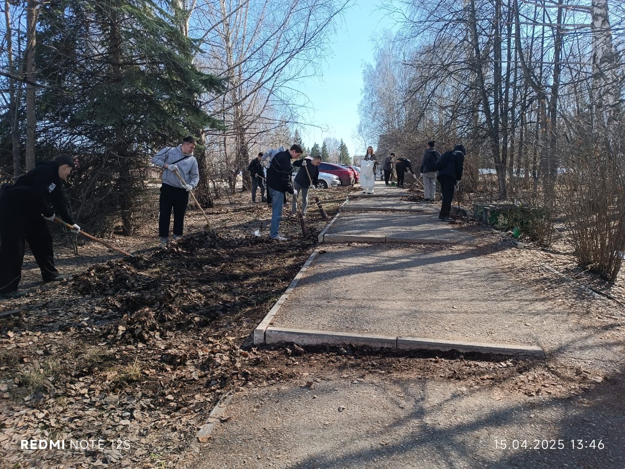 Студенты Альметьевского политехнического техникума провели субботник в "Ельнике" по адресу ул. Мира, д. 19