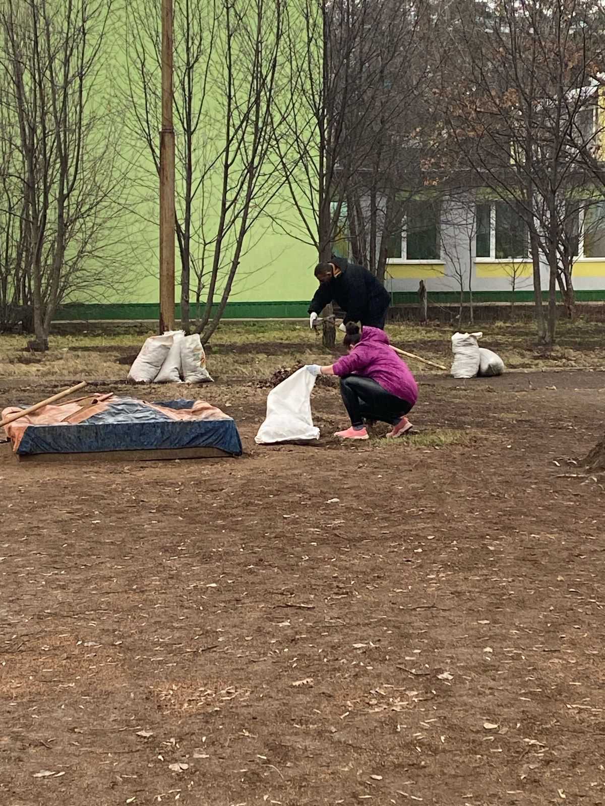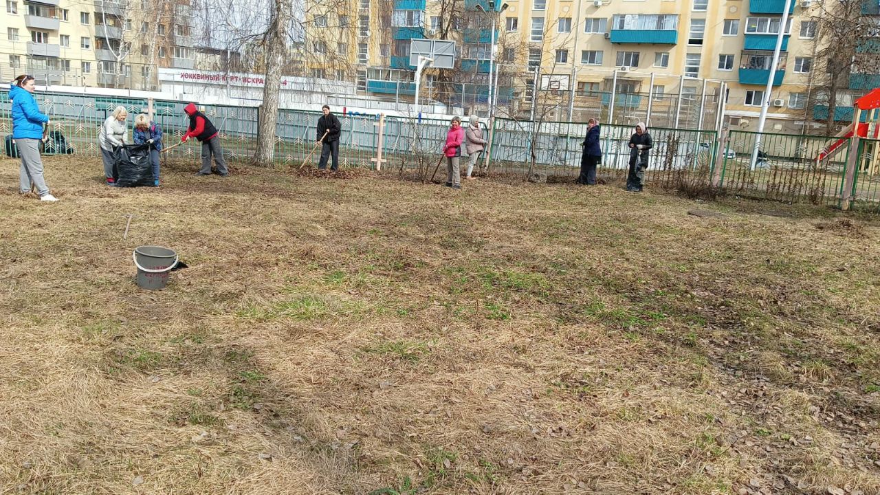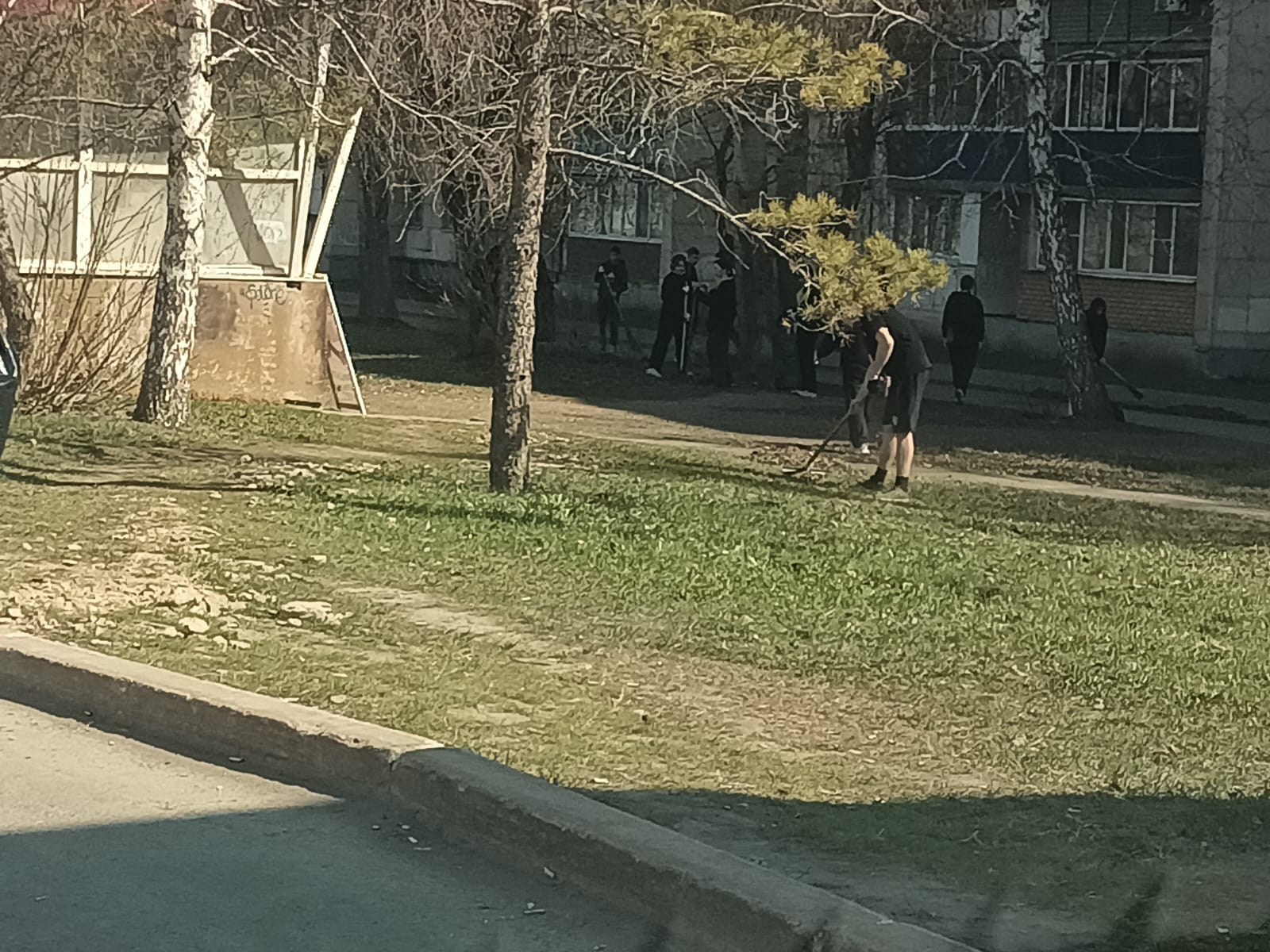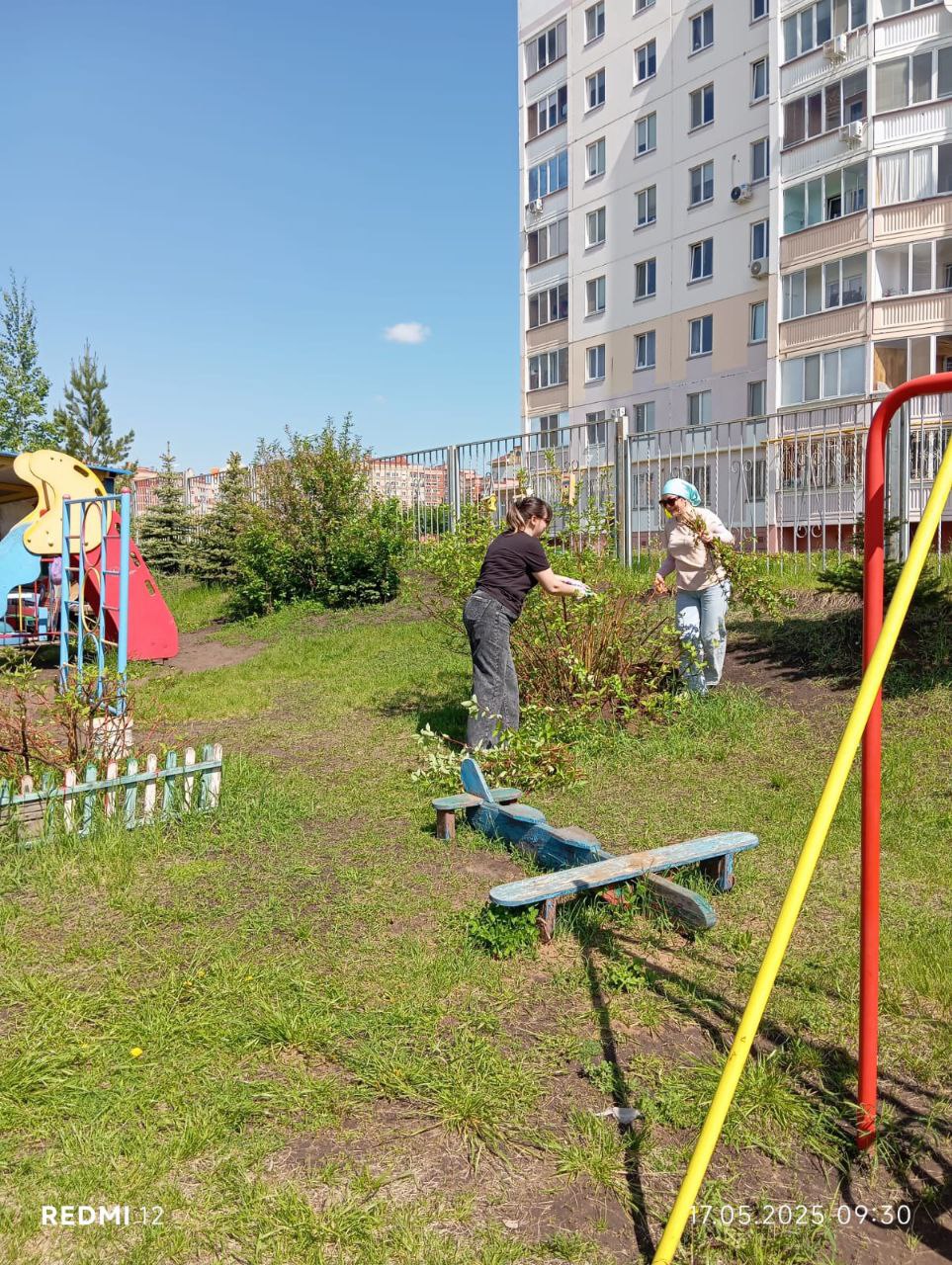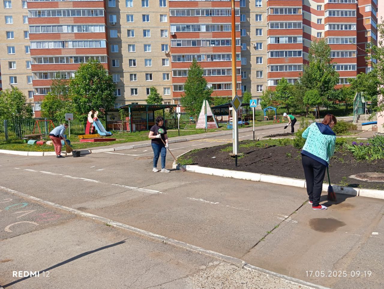 Территория детского сада №44 "Росинка" очень большая, много деревьев, выходили на уборку по несколько раз в неделю.