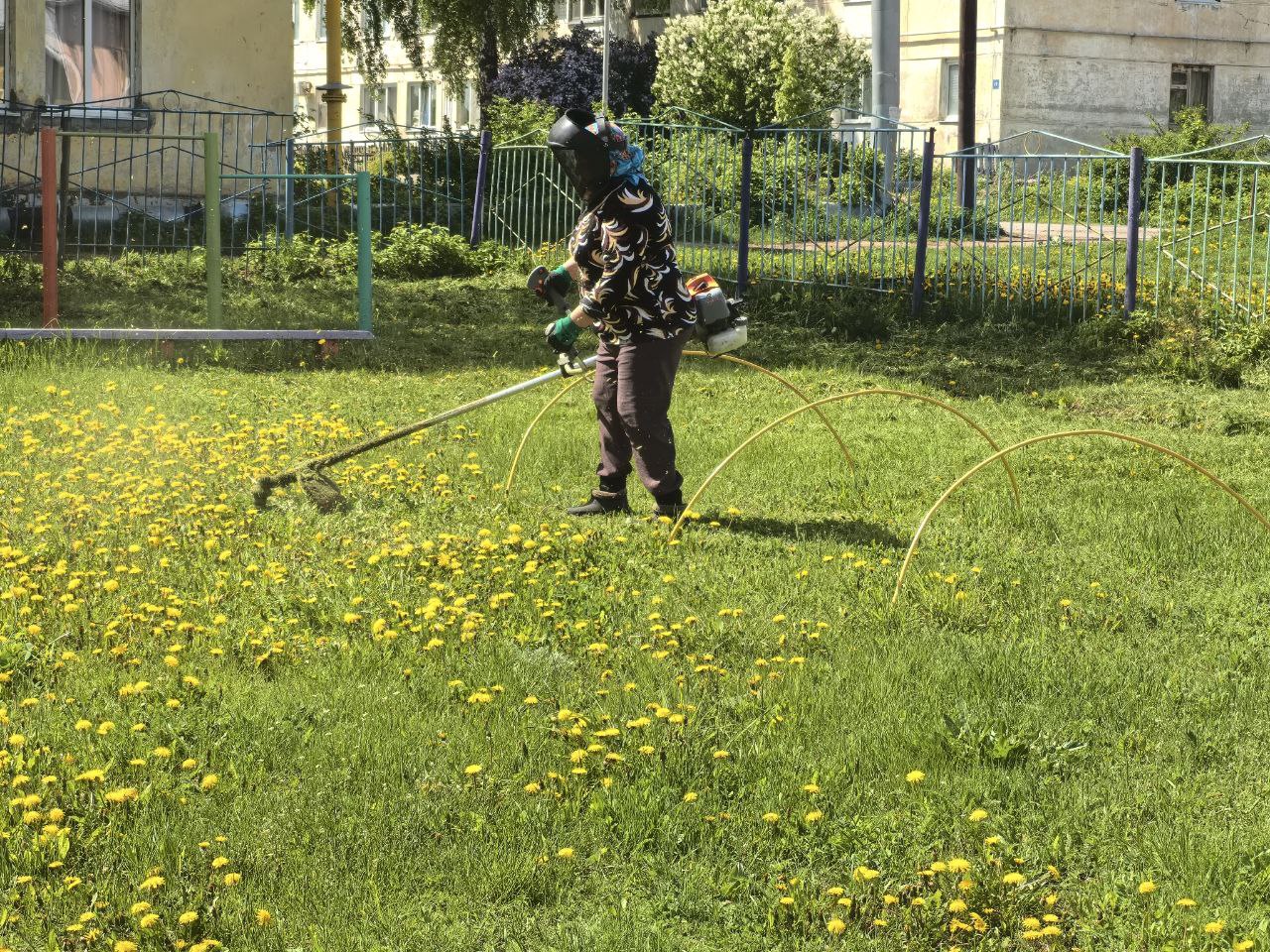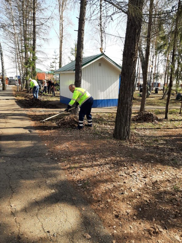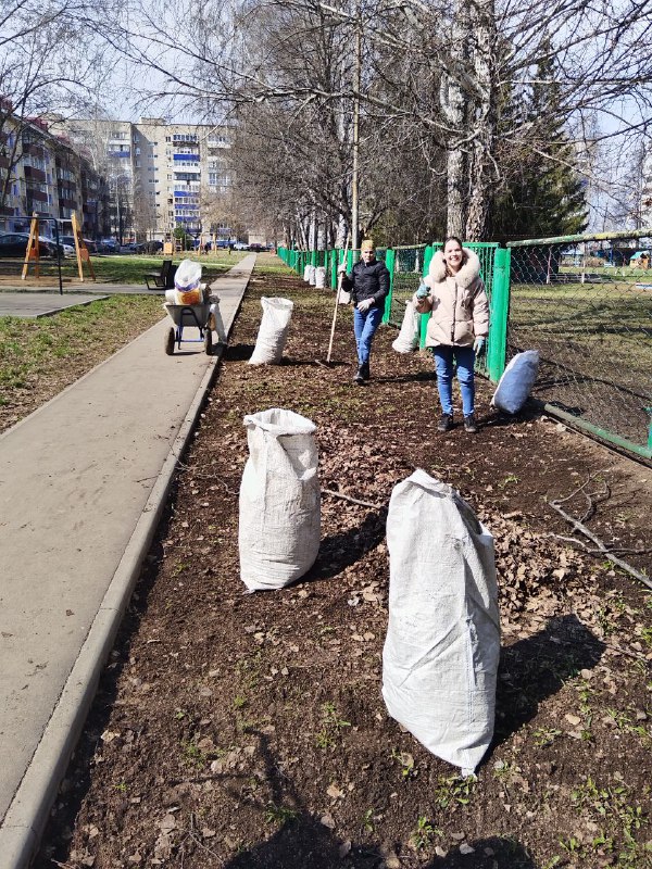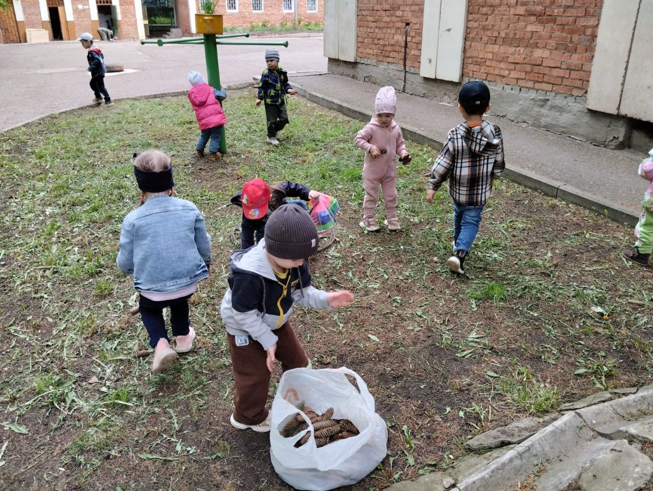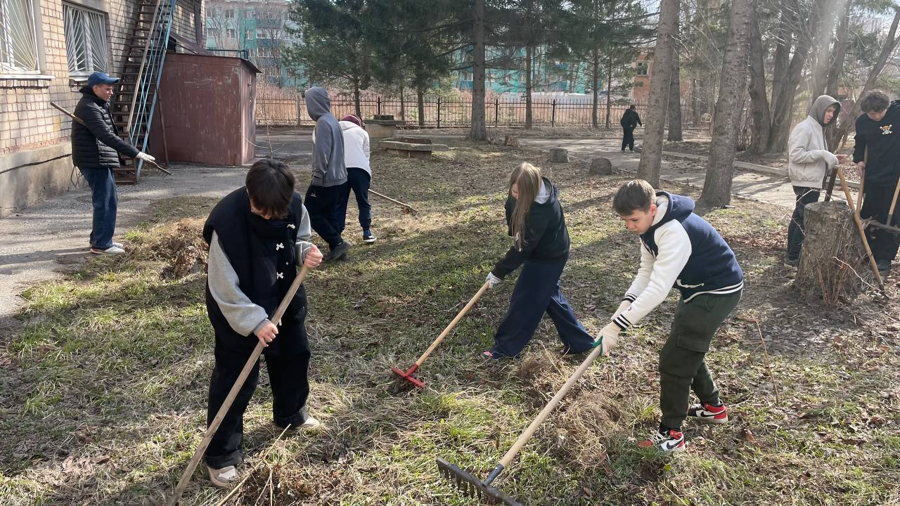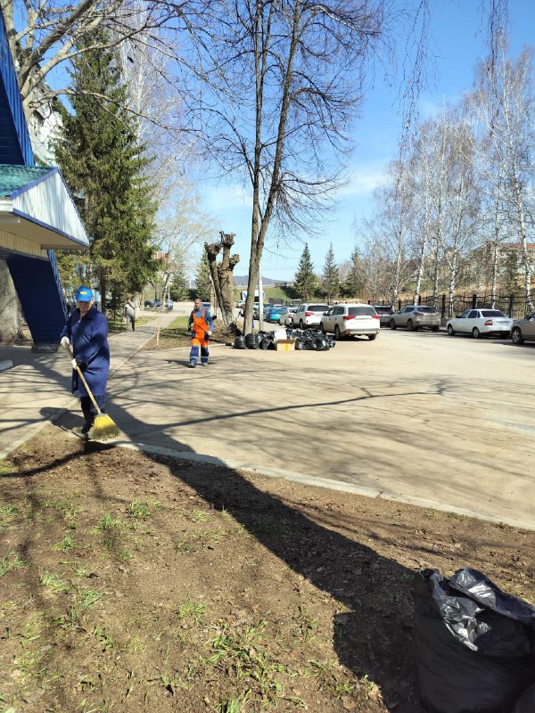 Территория детского сада №44 "Росинка" очень большая, много деревьев, выходили на уборку по несколько раз в неделю.