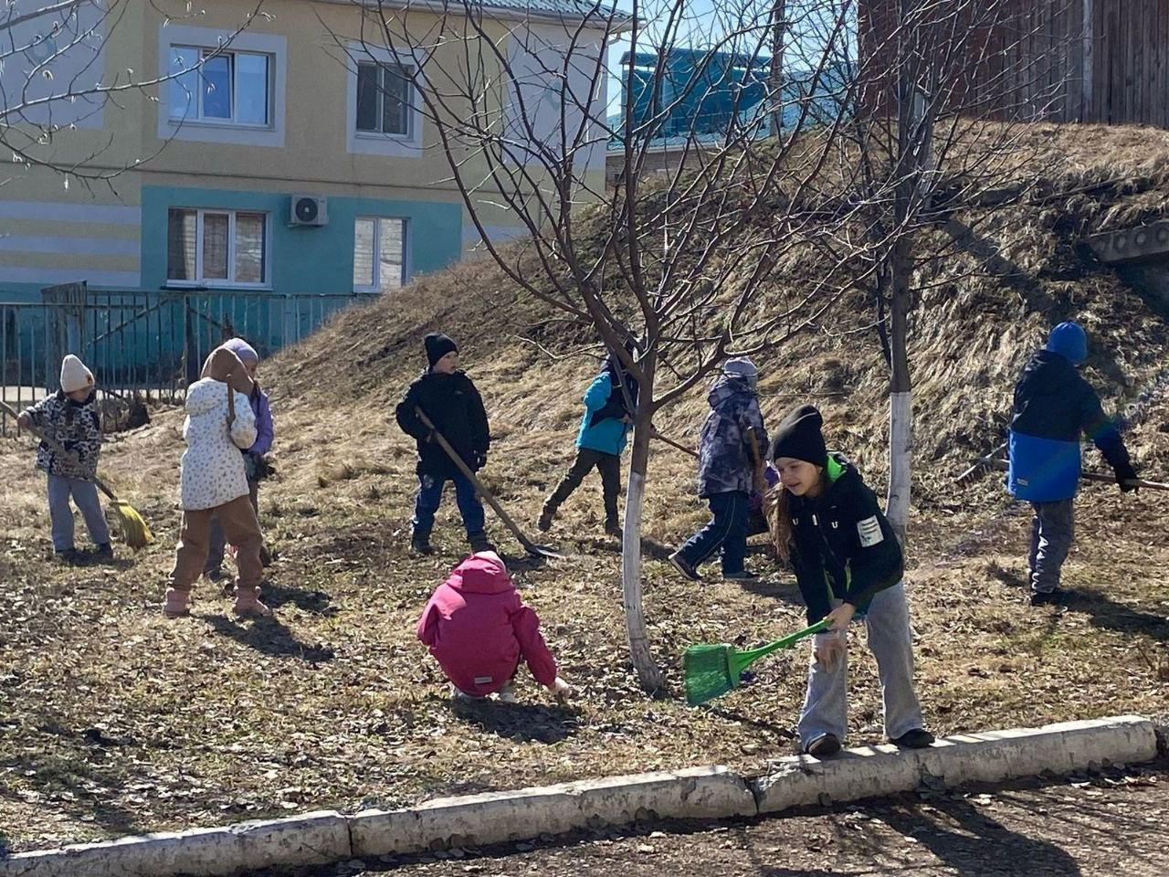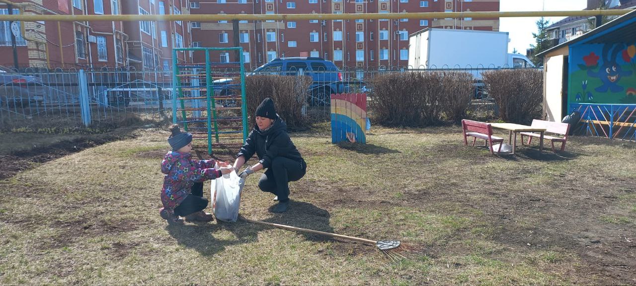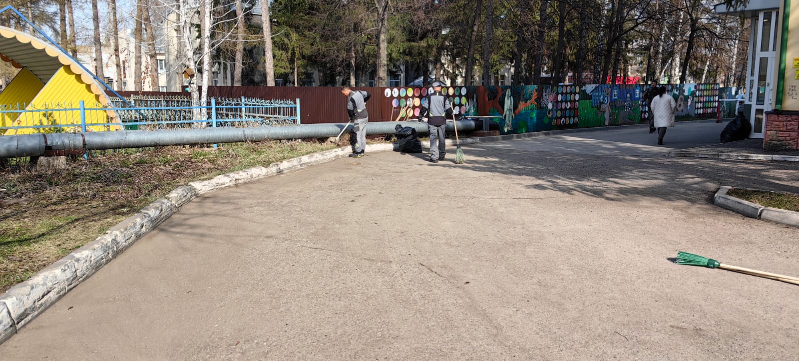 В детском саду "Рябинка" пос. ж/д ст. Калейкино" организовали субботник.