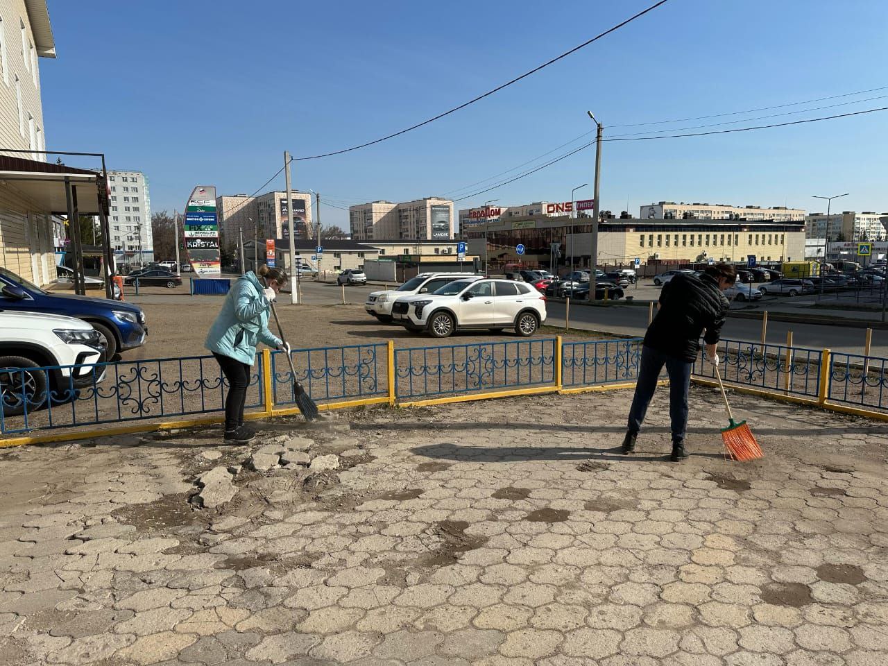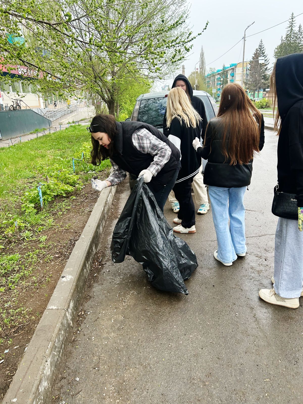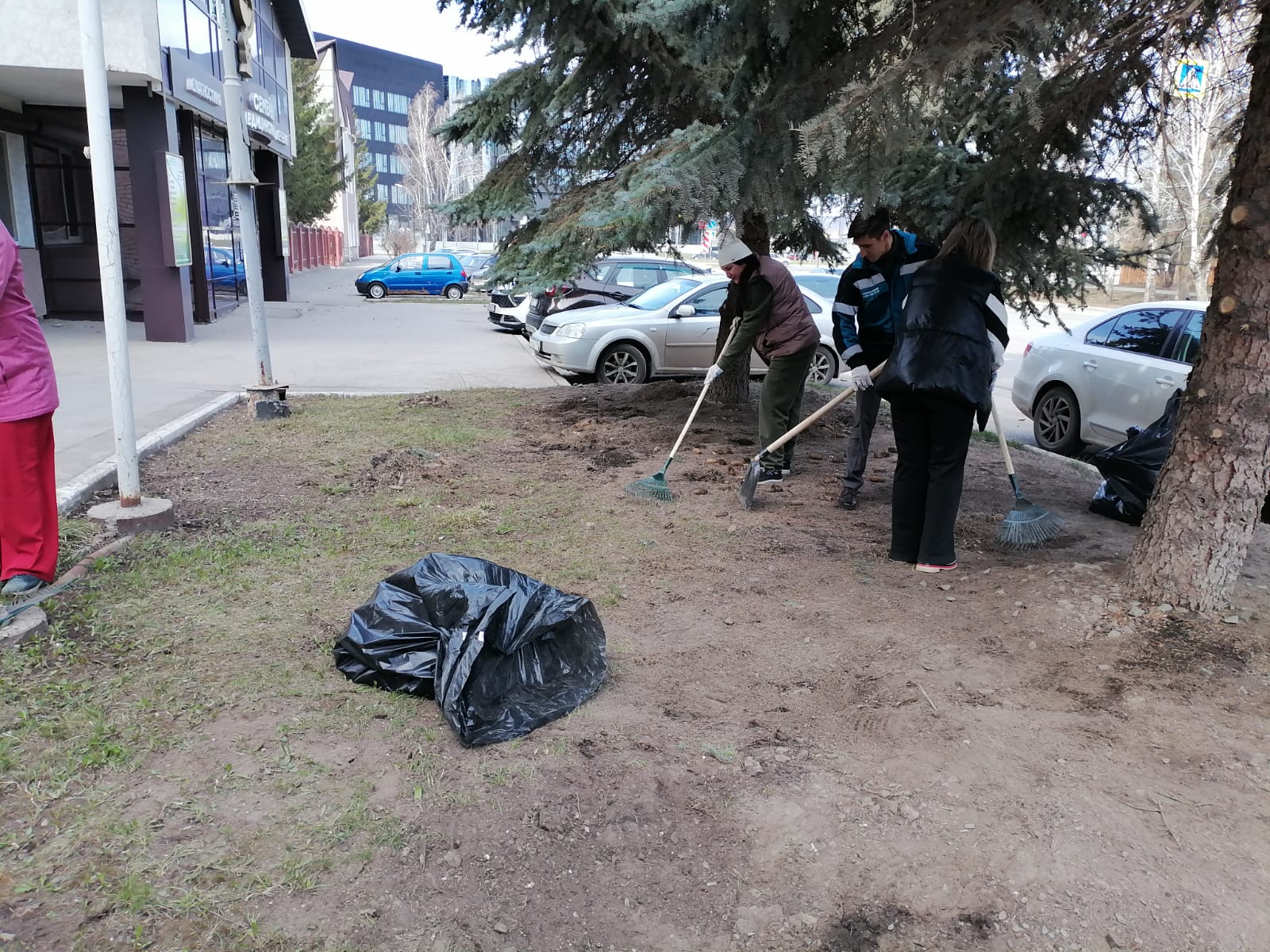 Студенты Альметьевского филиала "Университет Управления "ТИСБИ" провели уборку территории "Кинотеатра Татарстан" по пр. Г. Тукая, 27 А