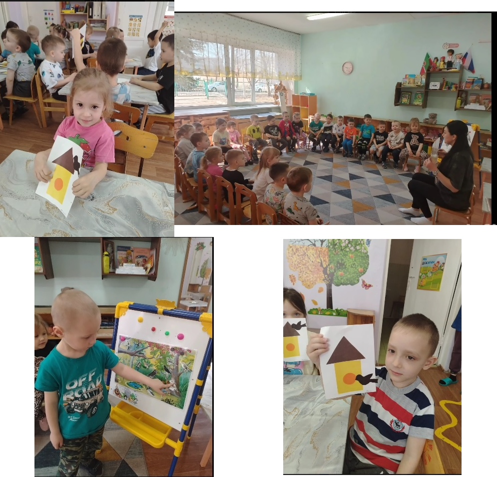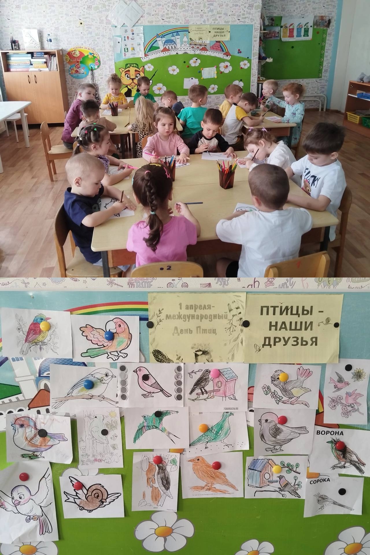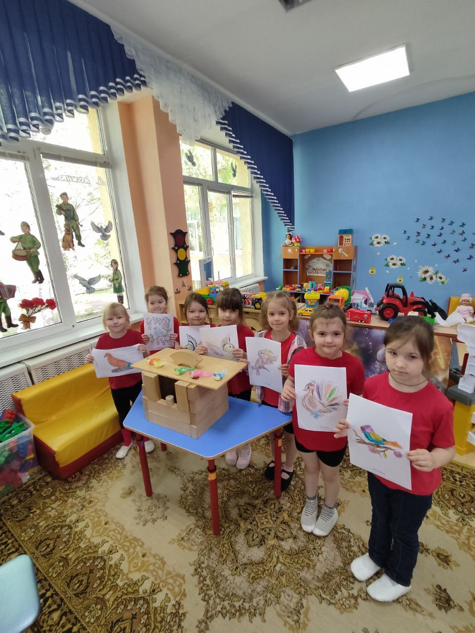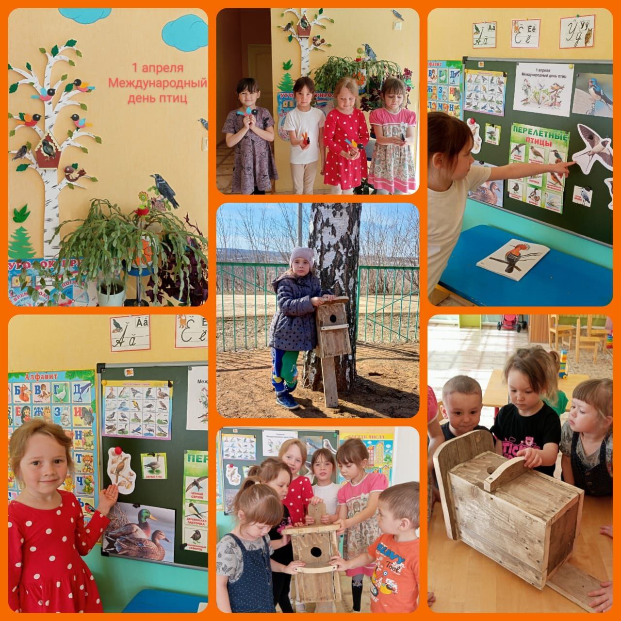 МБДОУ "Д/с "Рябинка" пос. ж/д ст. Калейкино" 1 апреля в мире отмечается экологический праздник - День птиц. У нас сегодня прошло мероприятие в рамках тематического дня, целью которого стало знакомство и закрепление знаний о птицах. Дети старшей группы узнали о зимующих и перелётных птицах, их внешнем виде, о пользе которые пернатые приносят природе и человеку. Дети рассматривали картинки, иллюстрации, играли в дидактические и подвижные игры, отгадывали загадки. Ребята нарисовали скворечники нашим прилетевшим друзьям. В результате проделанной работы дети узнали много нового и интересного., усвоили важное правило "Птиц не нужно обижать, птичкам нужно помогать".