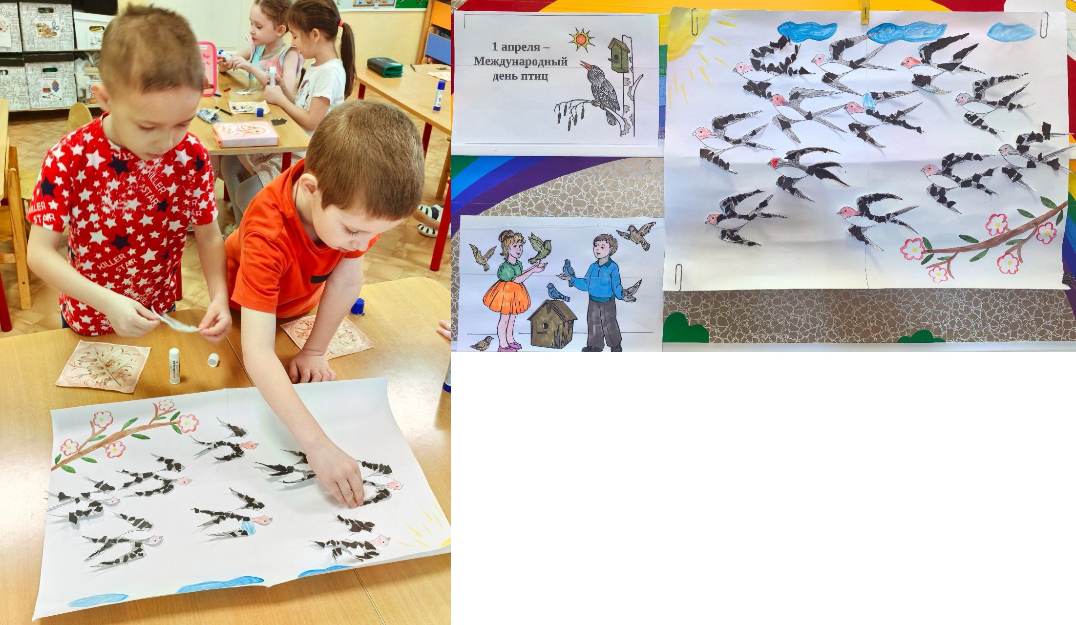 Международный день птиц - экологический праздник отмечающийся ежегодно в день 1 апреля. МБДОУ "Д/с "Милэш" с. Тайсуганово занятие по аппликации "Птички на ветке" в старшей-подготовительной группе.