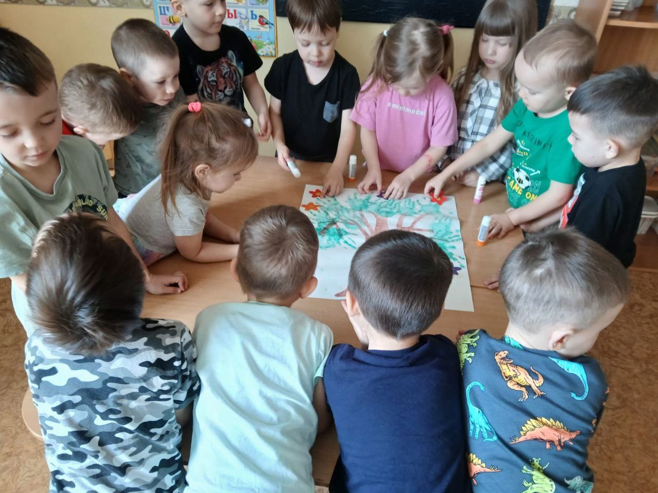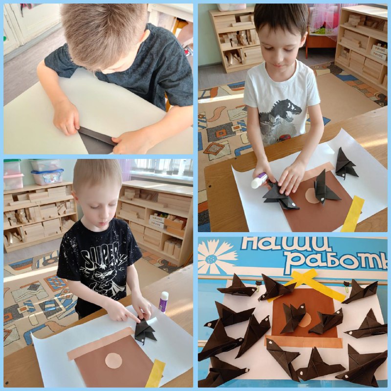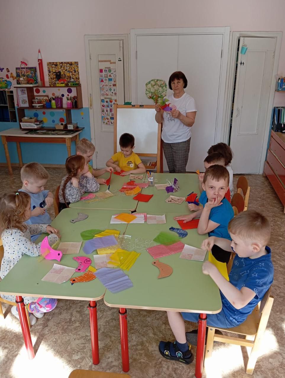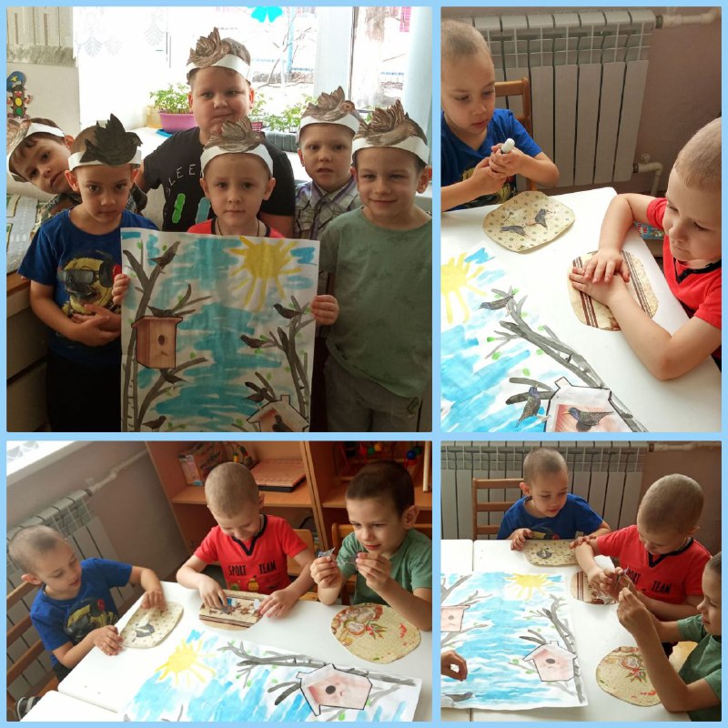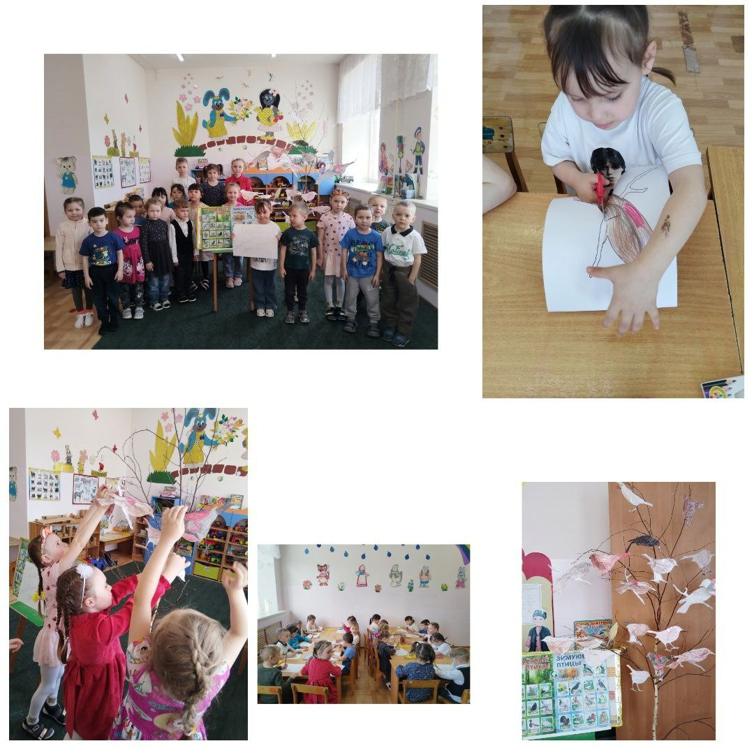 Воспитанники старшей группы N 1 сделали общую творческую работу к празднику "День птиц". Ребята выполнили ее с помощью аппликации, оригами и рисования.