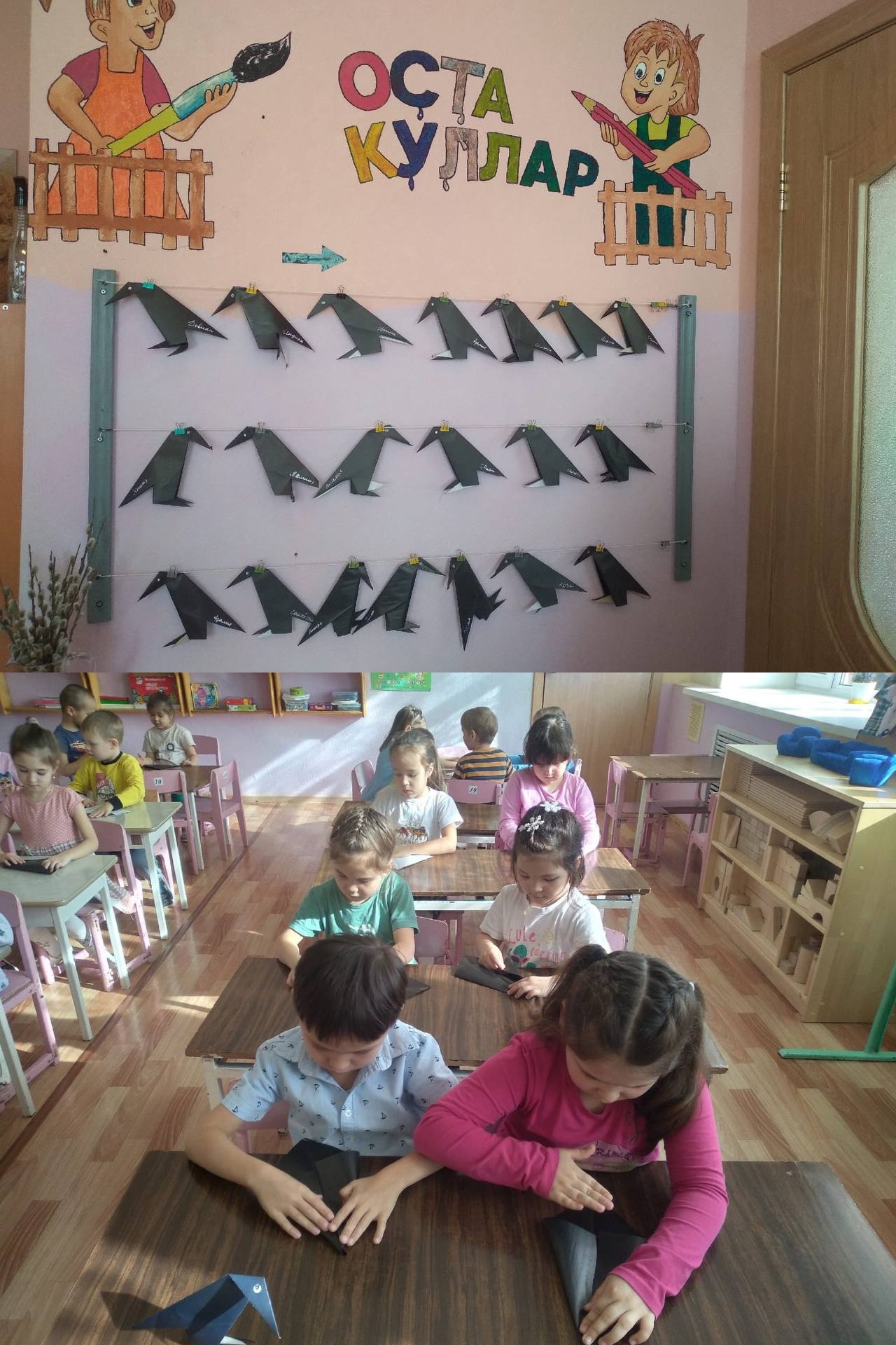 Первые вестники весны-это конечно же грачи. С детьми старшей и старше подготовительной группы сделали методом оригами красивых грачей к международному дню птиц. Детям очень нравится этот способ, они с удовольствием работают с бумагой и радуются своим успехам. МБДОУ "Д/с "Голчэчэк" с. Новое Надырово.