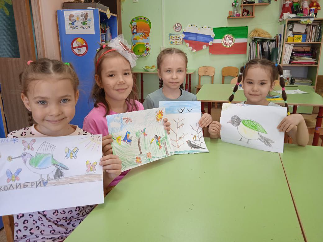 В МБДОУ № 58 Д/с «Шаян нэнилэр» Сегодня- 1 апреля отмечается Международный день птиц! Воспитанники логопедической группы "Почемучки", вместе с воспитателем, закрепили знания о птицах: вспомнили как они выглядят, как поют, какую пользу людям приносят. Ребята так же с удовольствием нарисовали рисунки любимых диких птиц и организовали выставку для родителей.