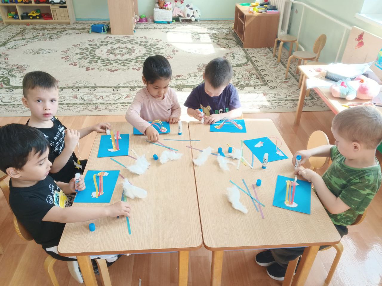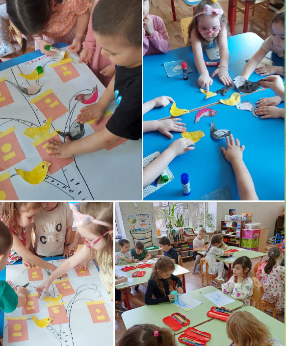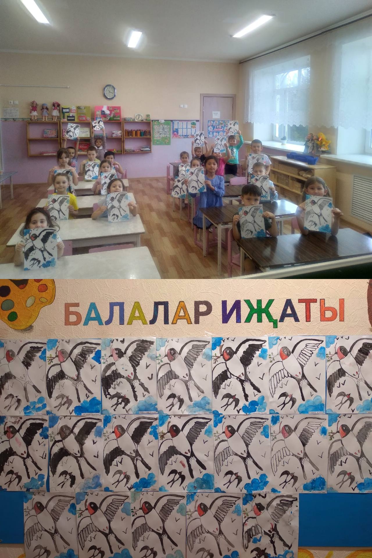 В детском саду N24 "Кук чэчэк" прошла акция "Птицы - наши друзья". В средней группе прошла аппликация " Скворцы прилетели".