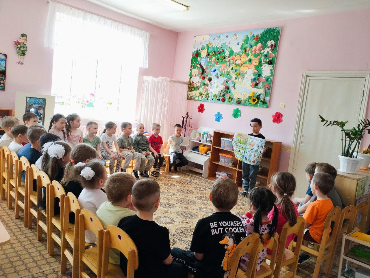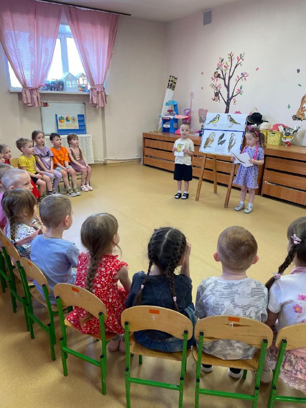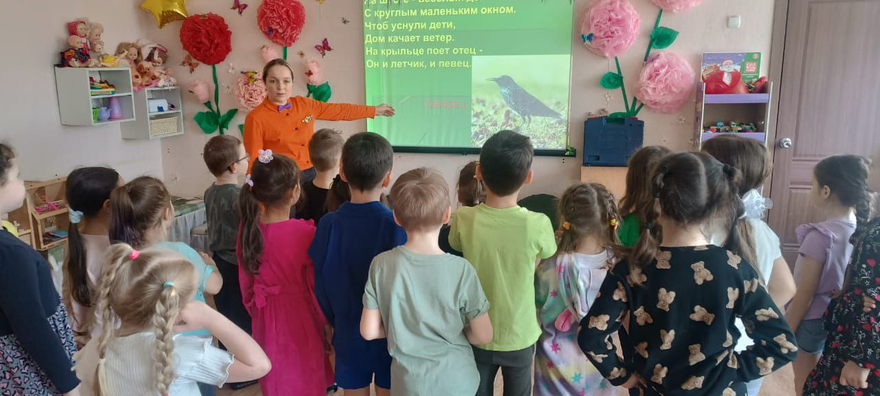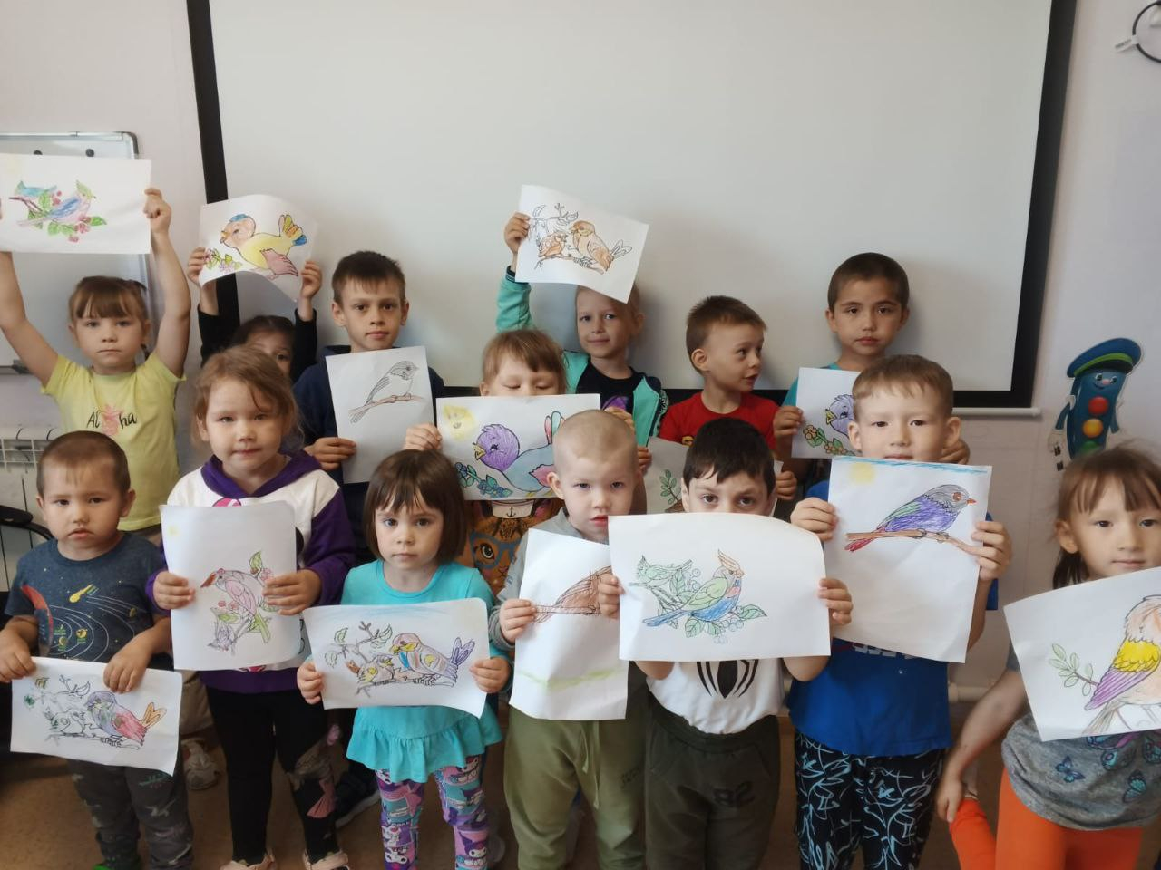 Дети детского сада 55 "Жаворонок" подготовительной группы "Аленький цветочек" поделились чтением знакомых стихов о птицах с детьми группы "Красная шапочка".