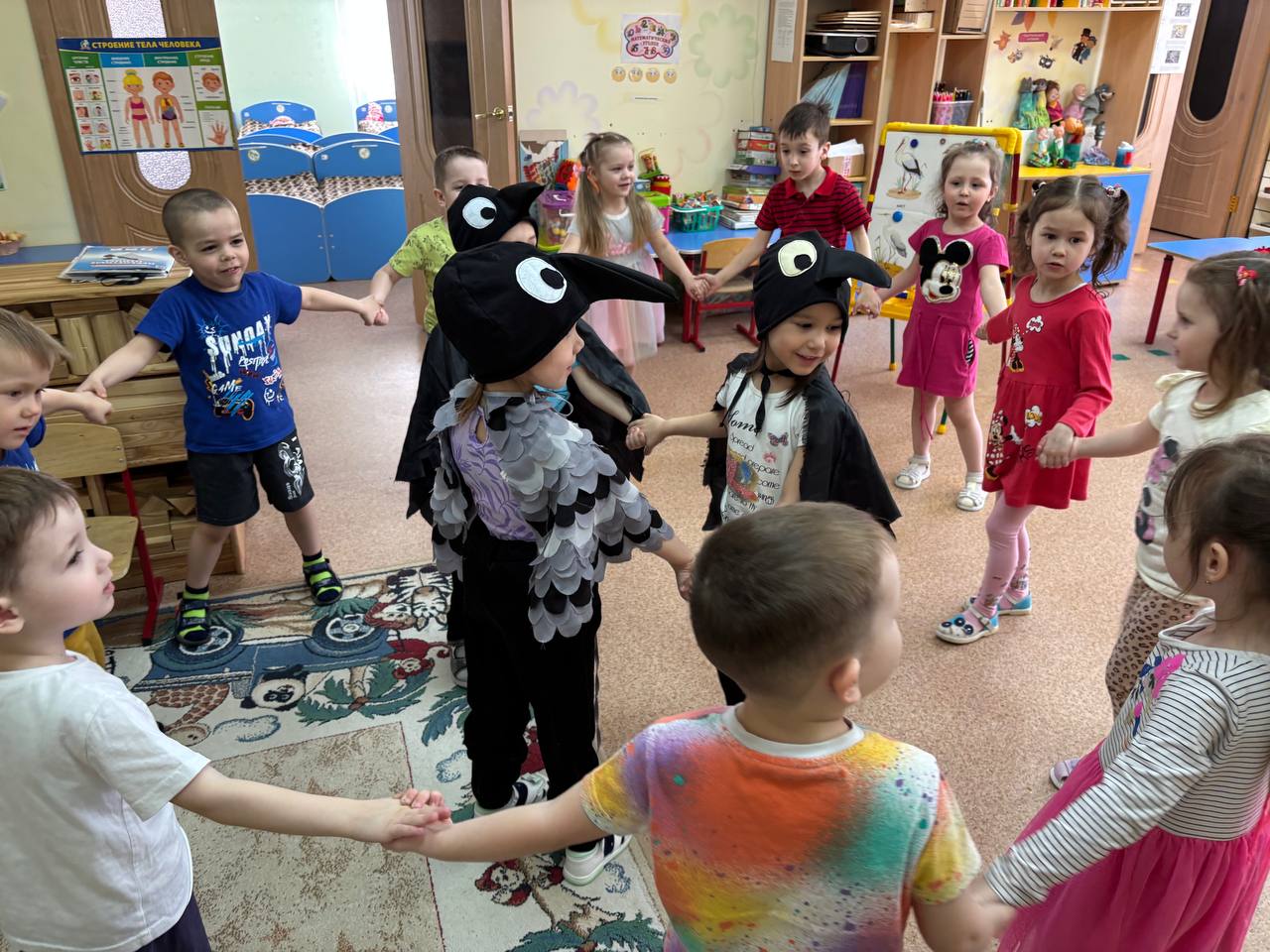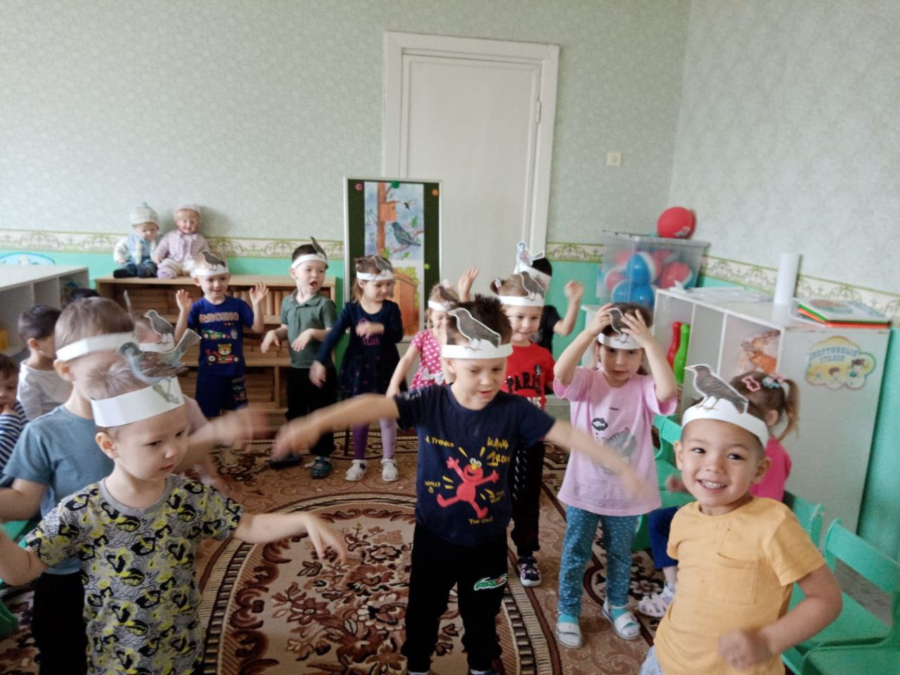 МБДОУ "Д/с "Солнышко" с. Кузайкино в День птиц провели в разновозрастной группе беседу про птиц, отгадывали загадки, а потом весело и дружно поиграли в игру"Ворона и воробьи".