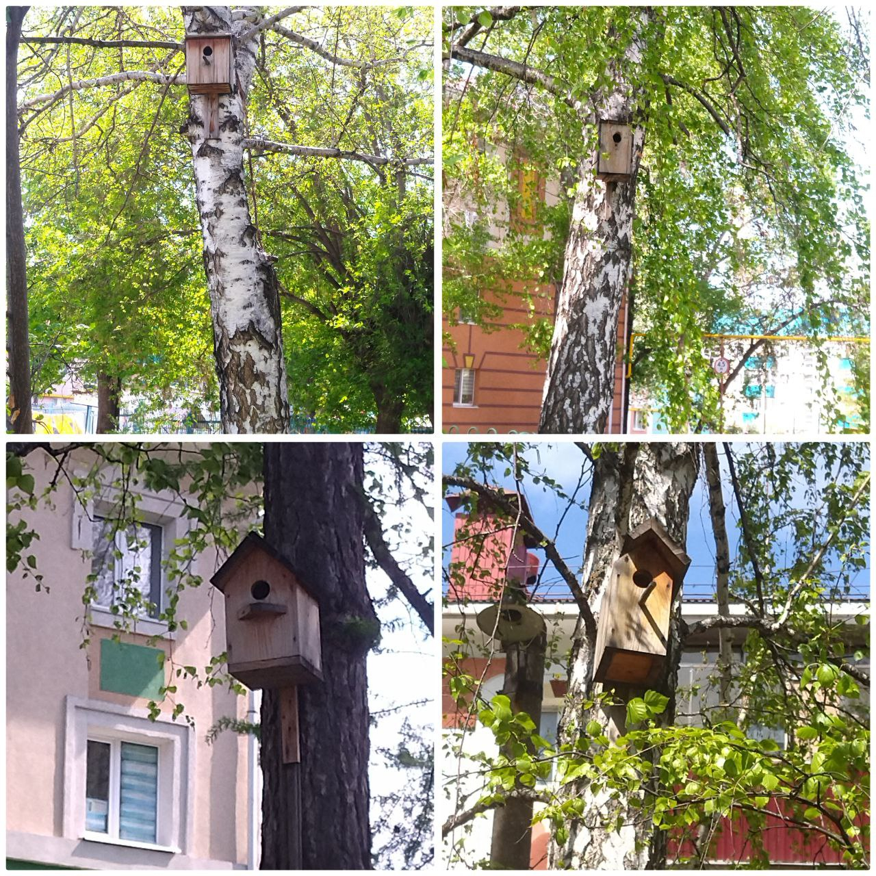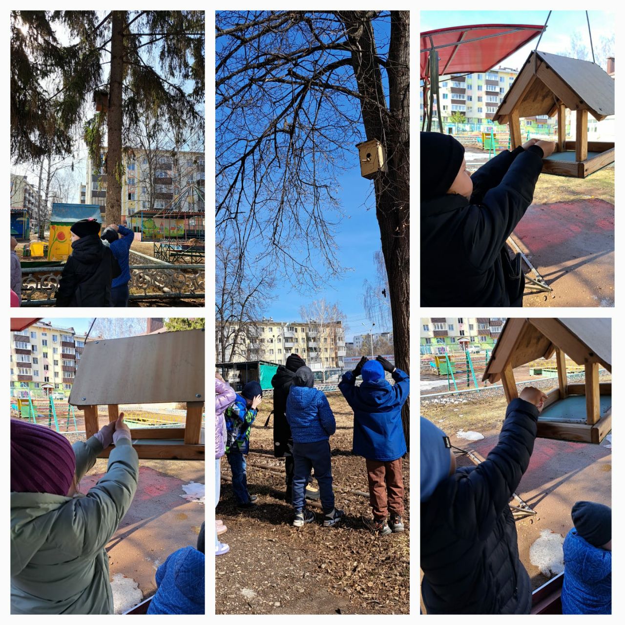 В МБДОУ N 33 "Незабудка" дети повесили скворечники для птиц.