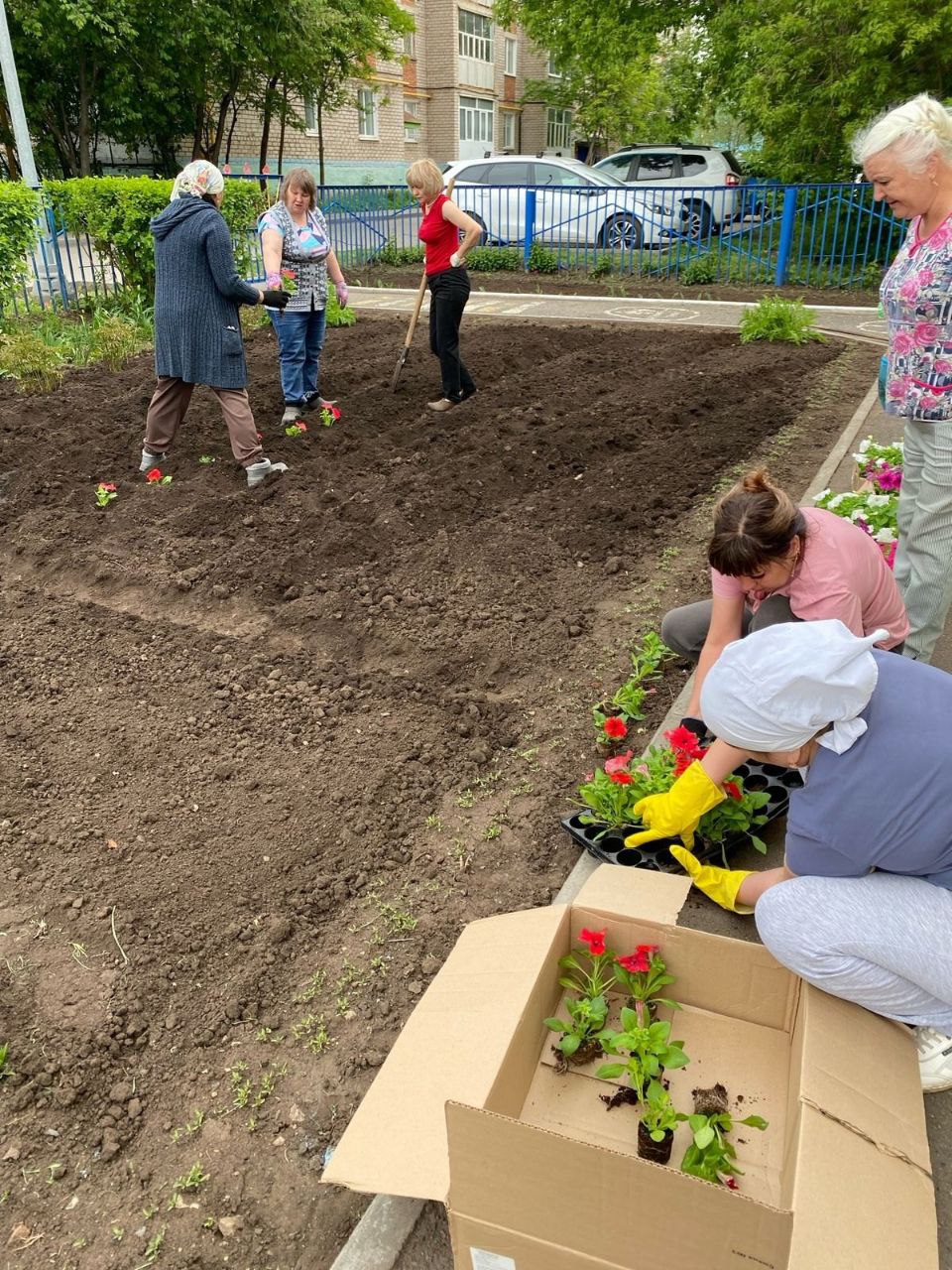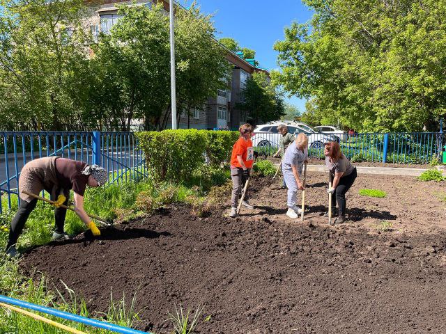 В детском саду №24 "Кук чэчэк" прошёл очередной экологический субботник. Сотрудники детского сада навели порядок на территории детского сада, вскопали огород, пропололи цветники и высадили рассаду цветов.