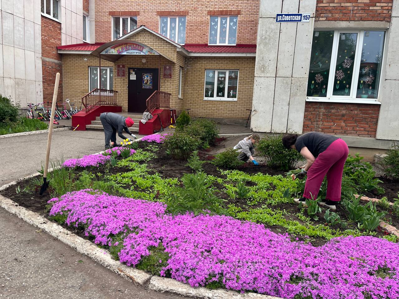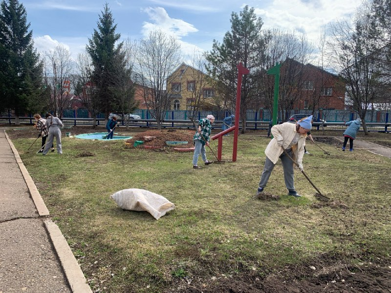 В МБДОУ «Д/с №56 «Крепыш» АМР РТ был проведен очередной субботник. Сотрудники детского сада навели порядок на территории детского сада, вскопали огород, пропололи цветники.