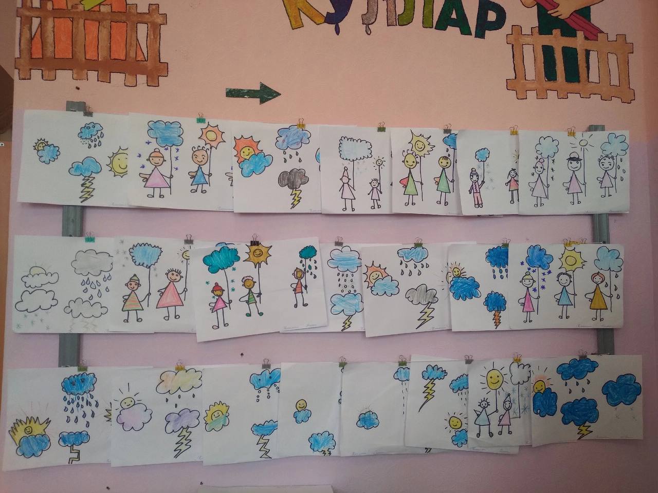 А еще дети приняли участие в изготовлении аппликации погодных явлений, создали своими руками интересные композиции.