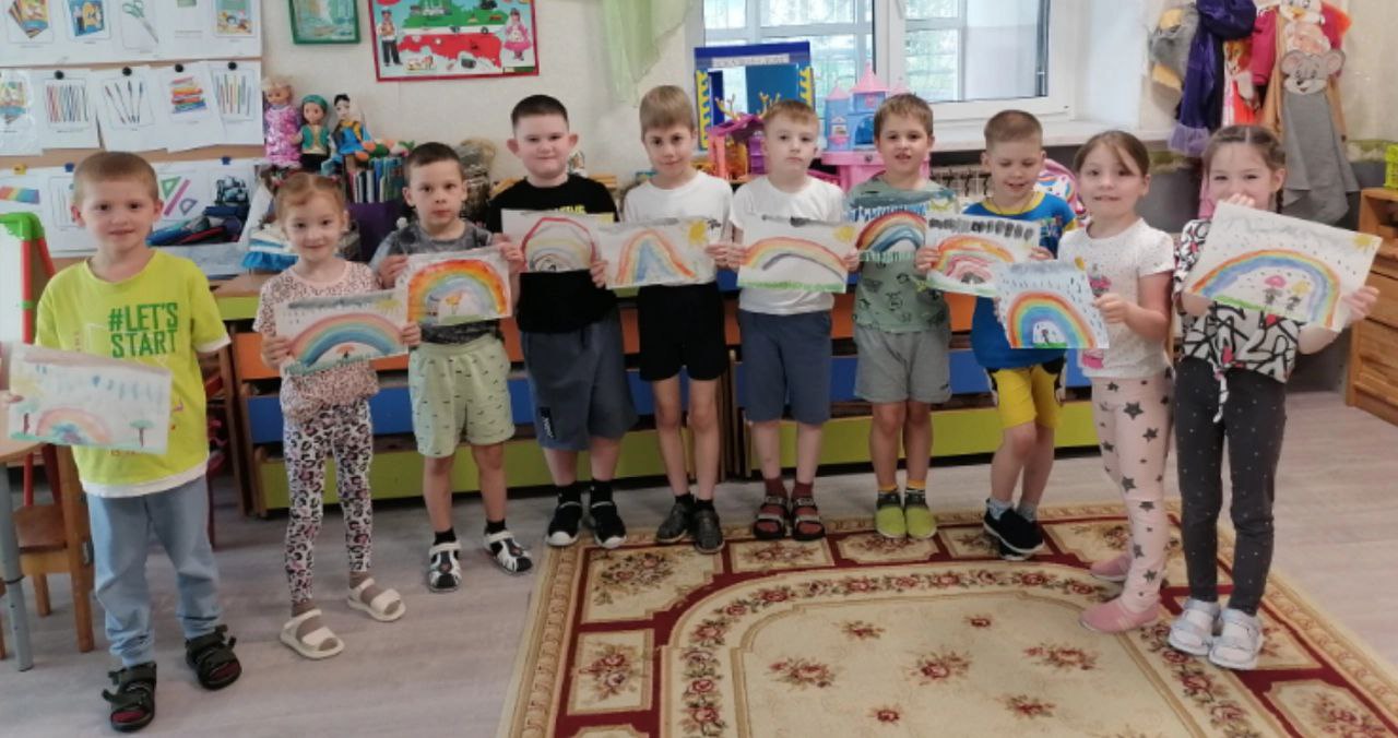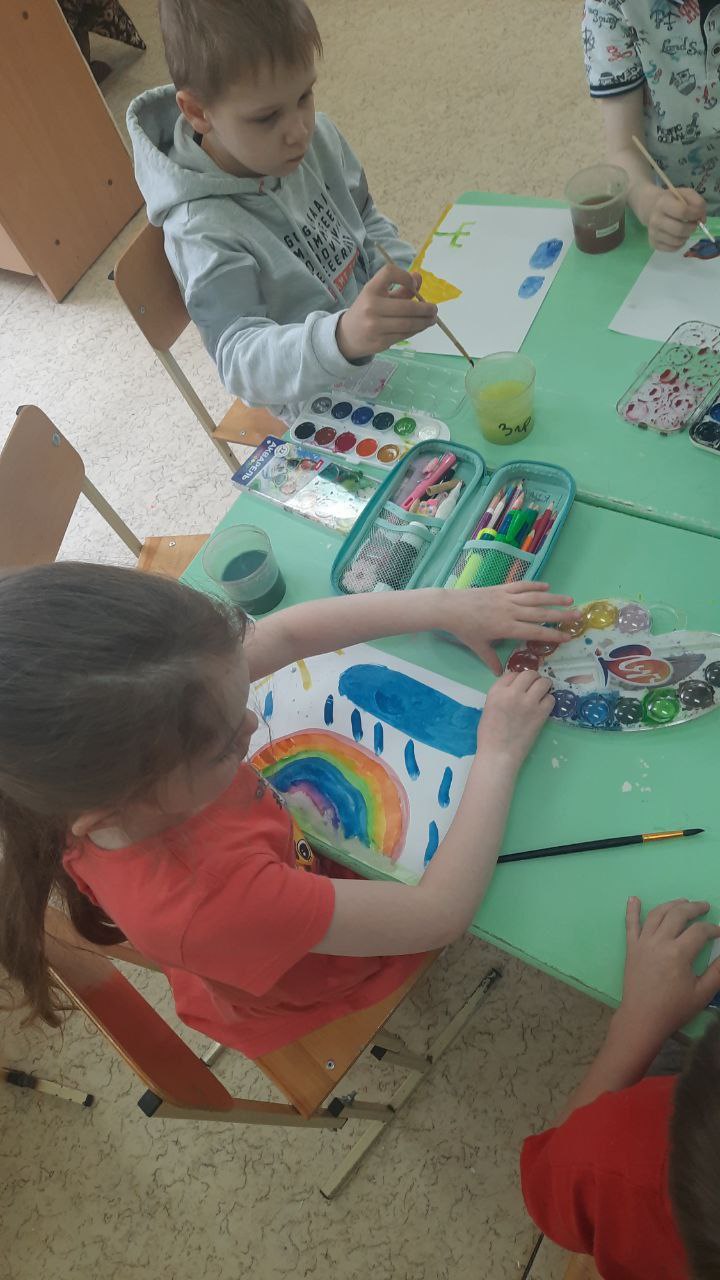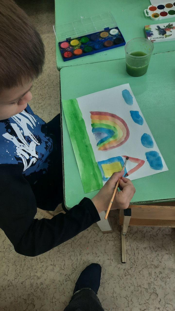 А в конце праздника каждый ребенок раскрасил свою радугу. День прошёл в атмосфере хорошего, весеннего настроения.
