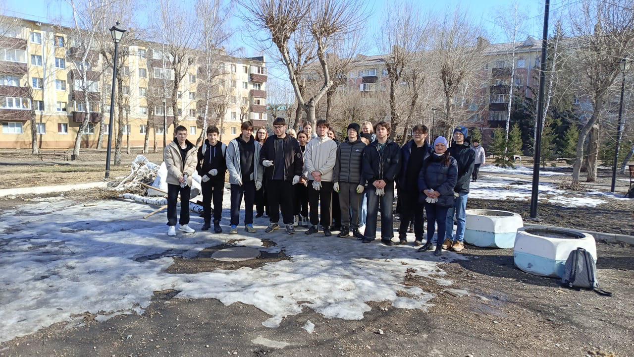 Студенты Альметьевского профессионального колледжа №65 провели уборку территории "Кадетского парка"