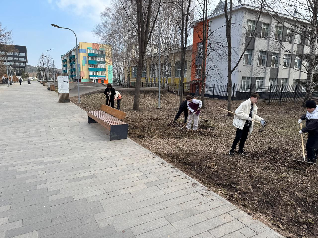Студенты Альметьевского техникума физической культуры провели уборку территории бульвара "Просвещения"