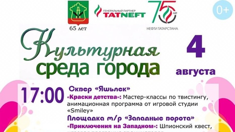 4 август көнне «Шәһәрнең мәдәни мохите» кабаттан әлмәтлеләрне һәм шәһәр кунакларын төрле чаралар белән шатландырачак. Яшь әлмәтлеләрне мастер-классларга, «Смайлик» студиясеннән анимацион программаларга һәм шпион квестына чакыралар. Әлмәтлеләр өчен шулай ук «Татнефть» хәйрия фондыннан «Сандугач сайрар илем» XXI балалар иҗаты фестивалендә чыгыш ясаучы катнашуы белән концертлар тәкъдим ителәчәк.