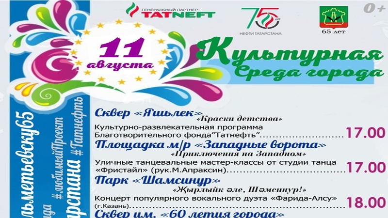 11 август көнне әлмәтлеләрне «Татнефть»,хәйрия фонды оештырган чараларда, урам биюләрендә һәм "Фристайл" мастер-классларында катнашырга чакыралар.