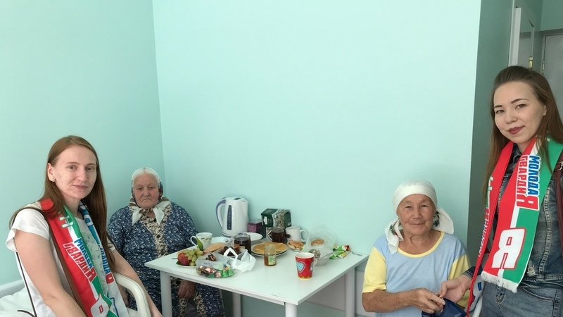 Әлмәт Яшь гвардиячеләре үзәк район хастаханәсендә дәваланучы ветераннар янында булып кайттылар. Алар палатадагы дәвалану һәм гомумән тору шартлары белән кызыксындылар, бүләкләр тапшырдылар.
