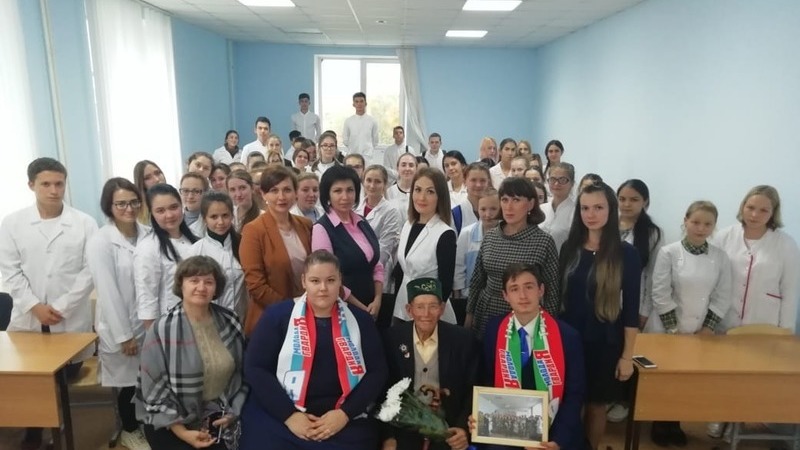 26 сентябрь көнне Әлмәт медицина колледжында Бөек Ватан сугышы ветераны Габдрахимов Габделбари Вагиз улы белән очрашу узды. Чара Бердәм Россия "Яшь гвардиячеләренең" Әлмәт бүлеге тарафыннан оештырылды. Очрашу бик кызыклы булды.