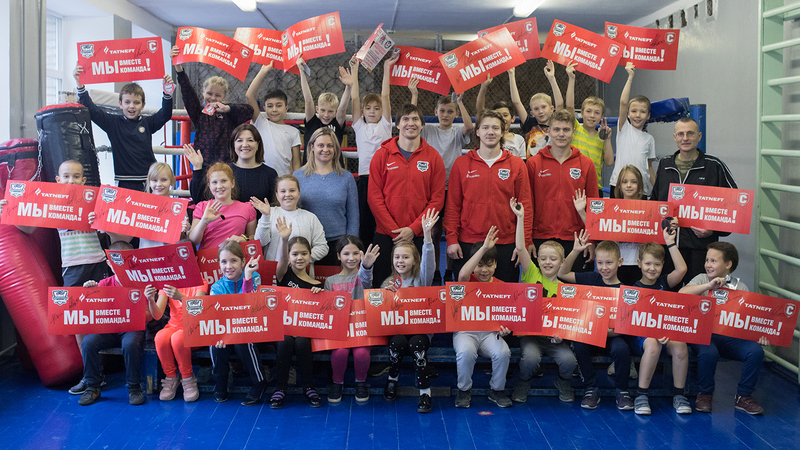 30 октябрь көнне «Нефтяник» командасы хоккеистлары Даниэль Насыбуллин, Илья Голубев һәм Данила Цыганов иртәнге якта 11 нче мәктәпкә килделәр. Биредә алар физкультура дәресе үткәрделәр. Спортзалда аларны 4 «В» классы көтте. Дәрес бик оешкан төстә узды.