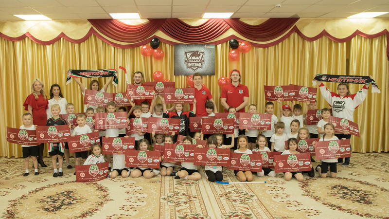 Хоккей клубының логотибы төшерелгән плакатлар белән бизәлгән спорт залында хоккейчыларны ике кечкенәләр төркеме каршы алды. Иң элек спортчылар сабыйлар белән белән зарядка ясады. Аннан соң кечкенәләр командаларга бүленеп эстафетада катнаштылар. Бу көнне хоккейчылар яшь җанатарлары өчен хәттә кәшәкә белән конкурс уздырды. Очрашуахырында хоккейчылар аларга истәлекле бүләкләр дә тапшырды.