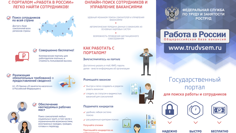Әлмәт мәшьгульлек үзәге гражданнарга һәм эш белән тәэмин итүчеләргә “Россиядә эш” (Работа в России) дәүләт порталының эше турында мәгълүмат бирә, порталның Интернет челтәрендә адресы https://trudvsem.ru