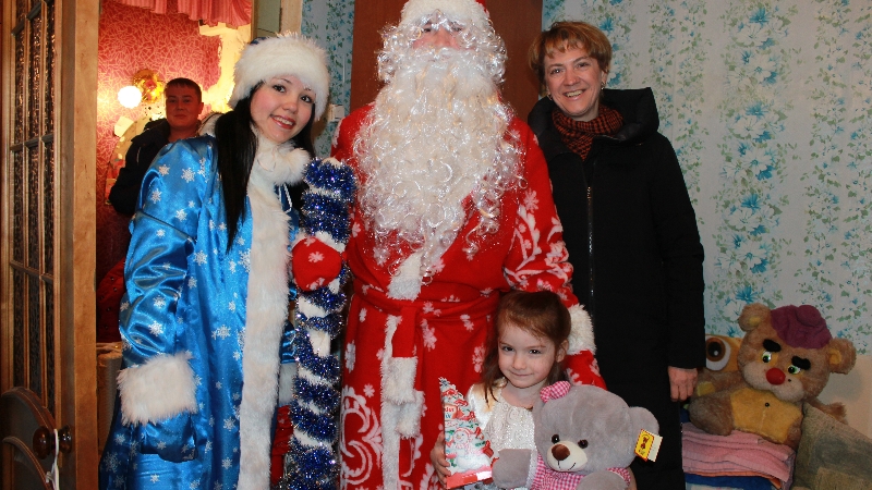 Әлмәт сәламәтлек саклау идарәсе җитәкчесе Вера Головина Яңа ел алдыннан Киров урамындагы тулай торакта яшәүче Мәрьям Буданцевага бүләк ясады.