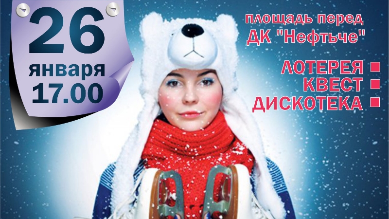 26 гыйнвар көнне 17.00 сәгатьтә "Нефтьче" мәдәният йорты каршында Студент көненә багышланган чара узачак. Программада лотерея, квест, дискотека.