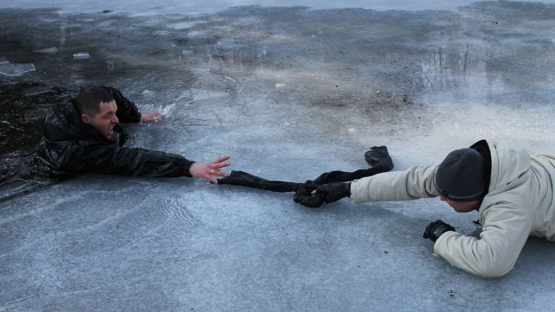 - баш белән чумас өчен боз кырыен тотырга тырышырга