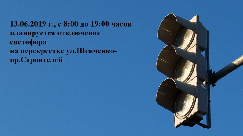 13 июнь көнне планлы рәвештә 8.00дән 19.00гә чаклы Шевченко урамы - Төзүчеләр проспекты киселешендә светофор сүндерелә.