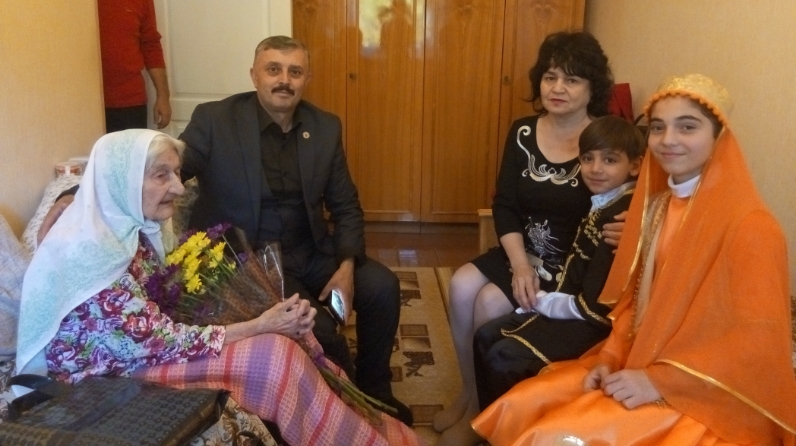Өлкәннәр көне декадасы кысаларында 3 октябрьдә «Бирлик» әзербайҗан диаспорасы рәисе Бакиров Фикрат Әҗдәр улы, социаль яклау идарәсе вәкиле Хәмидуллина Минеголь Сәмигулла кызы белән бергә, Әлмәт муниципаль районы халкын 100 елдан артык гомер бәйрәме белән котлады.