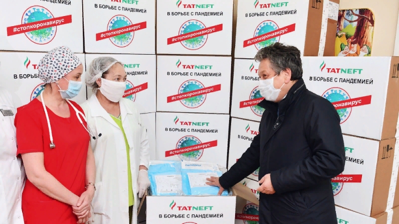 "Татнефть «саклагыч битлекләр, костюмнар һәм комбинезоннар, ә "ТАНЕКО" да —антисептик препаратлар җитештерүне оештырды. Шушы көннәрдә эшләнмәләрнең беренче партияләре республиканың көньяк-көнчыгыш медицина оешмаларына тапшырылды.
